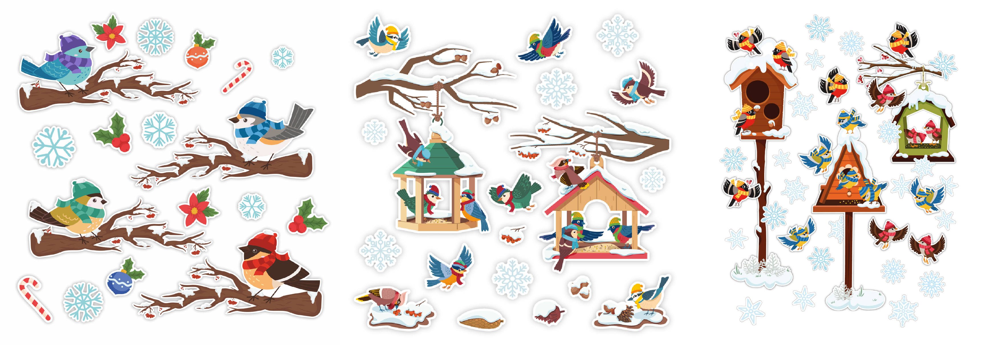 2. Ptaszki zimowe, karmniki na gałęzi i karmniki stojące – zestawy, które nie tylko ozdabiają, ale też mogą stać się pretekstem do edukacyjnych rozmów o dokarmianiu ptaków w zimie. Ich ciepła kolorystyka i urocze ilustracje sprawiają, że wnętrze staje się bardziej przyjazne i pełne życia, nawet gdy za oknem panuje mróz.