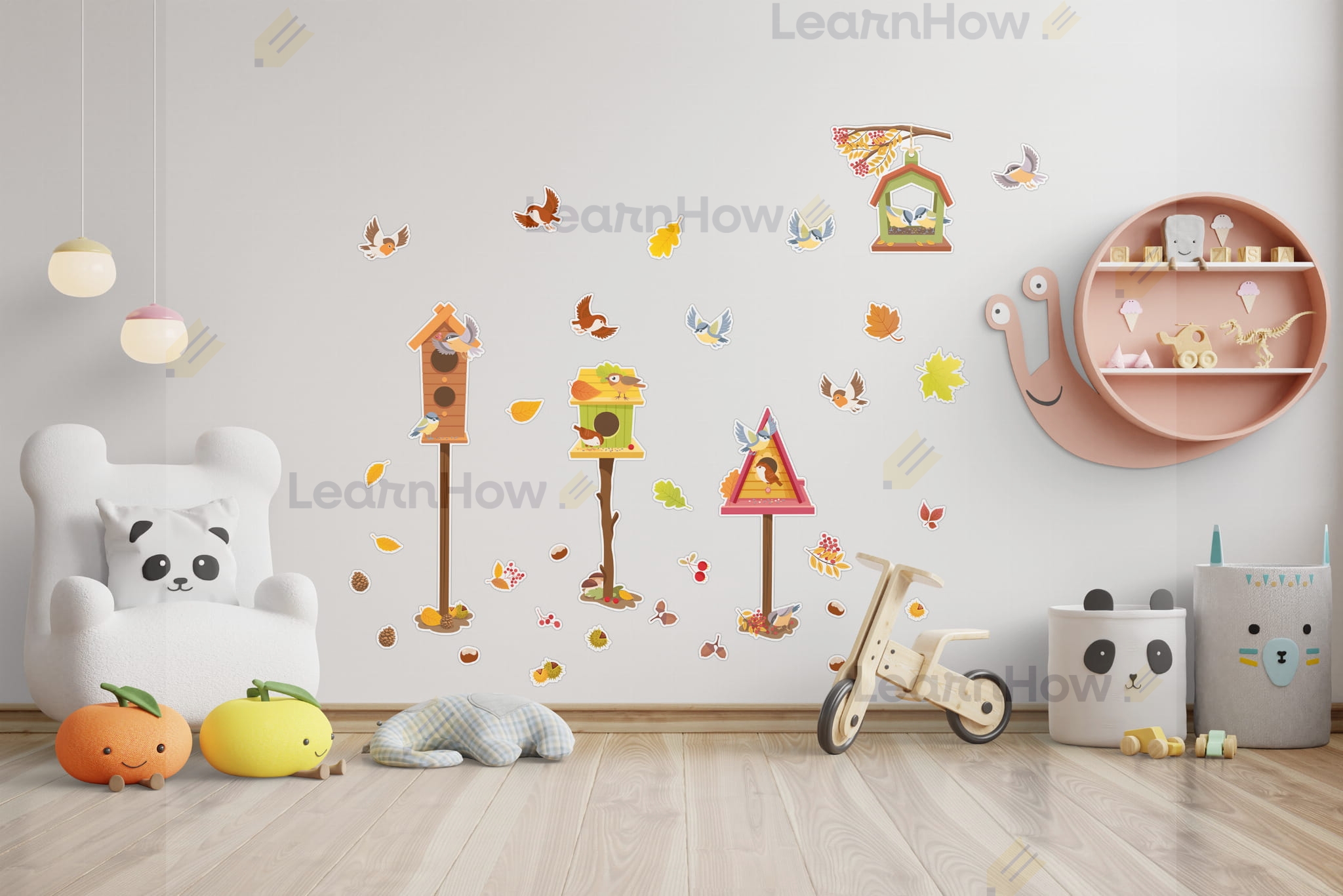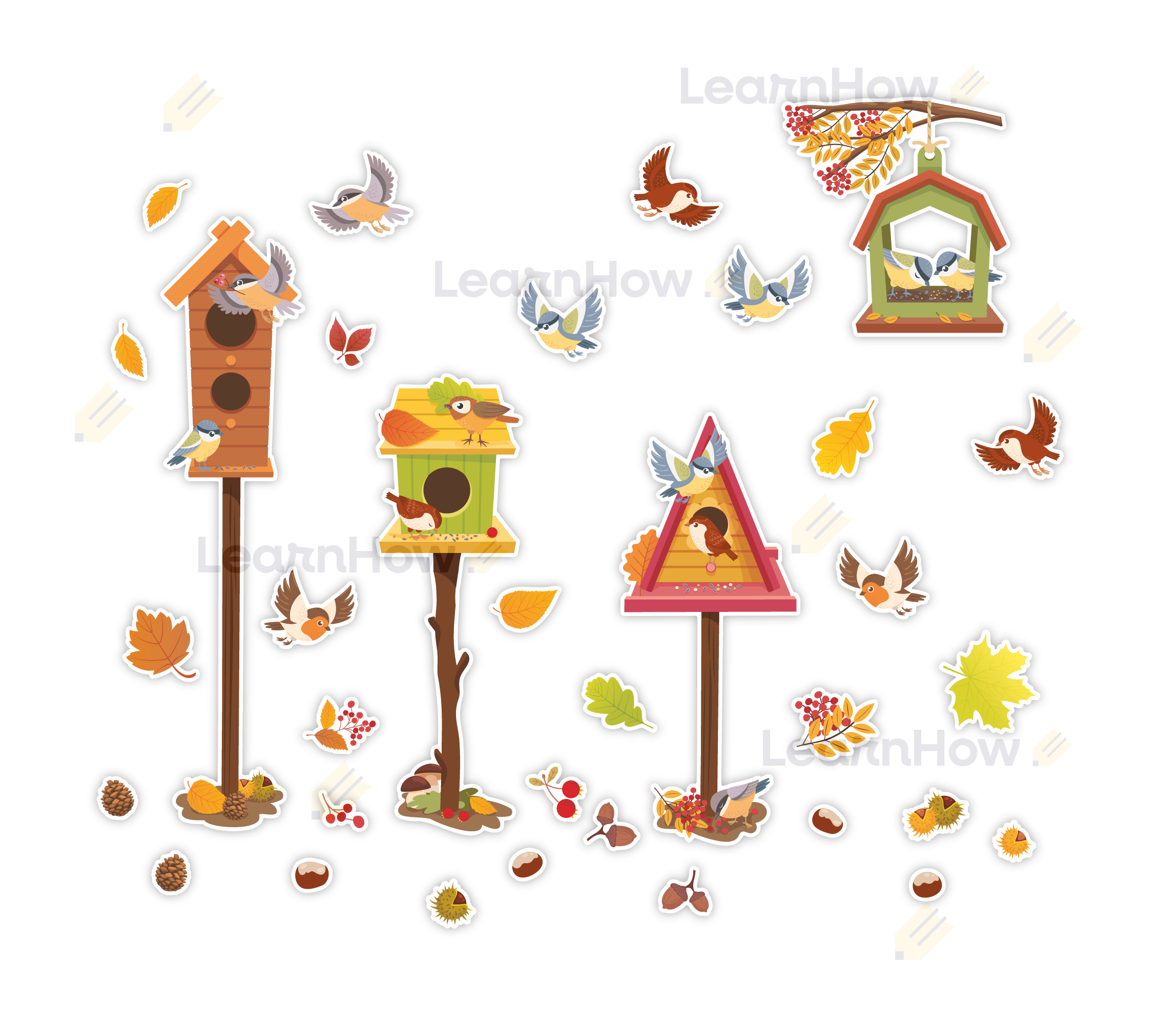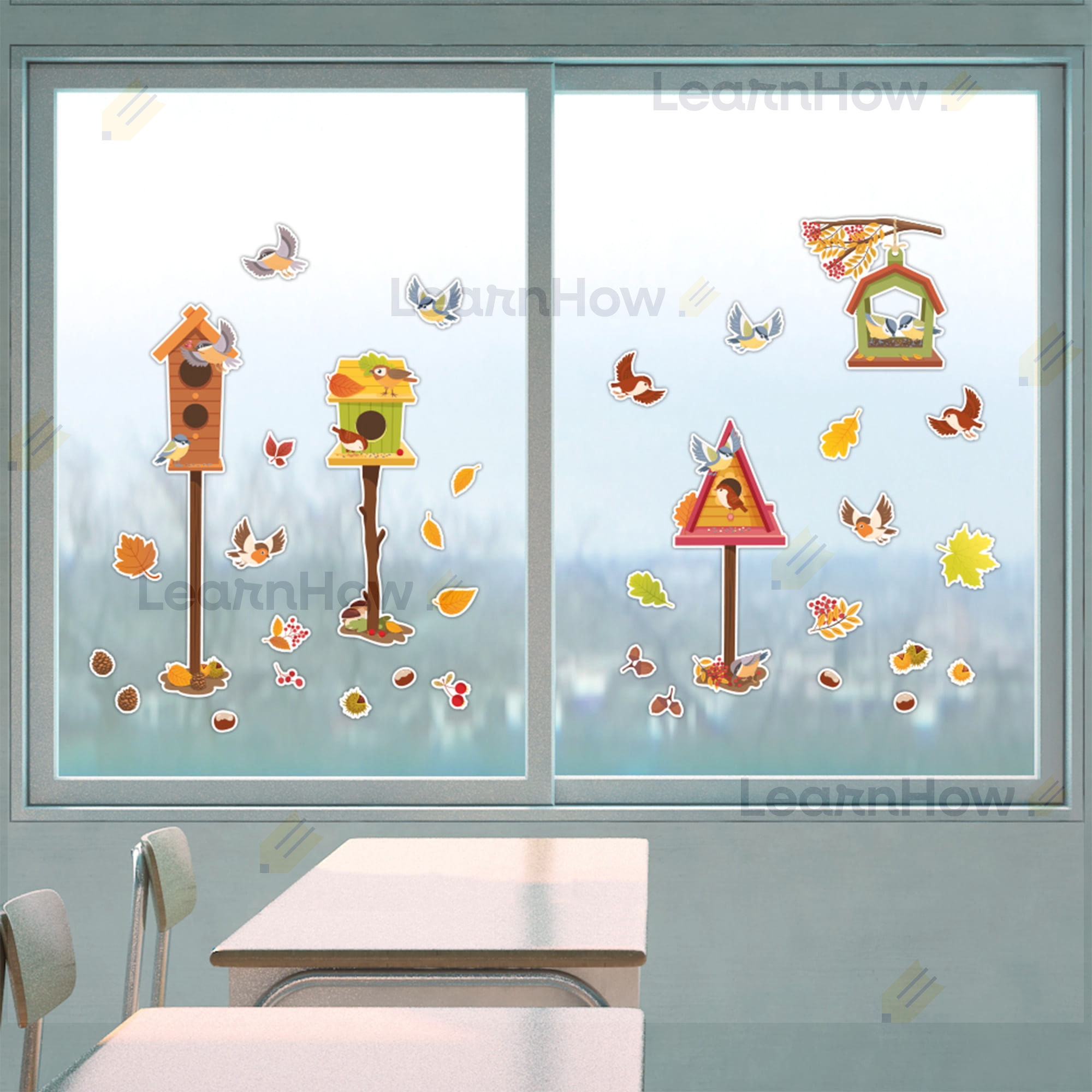 Zestaw składa się z 34 elementów - 4 karmników, 7 ptaszków, 8 liści oraz 15 jesiennych elementów.