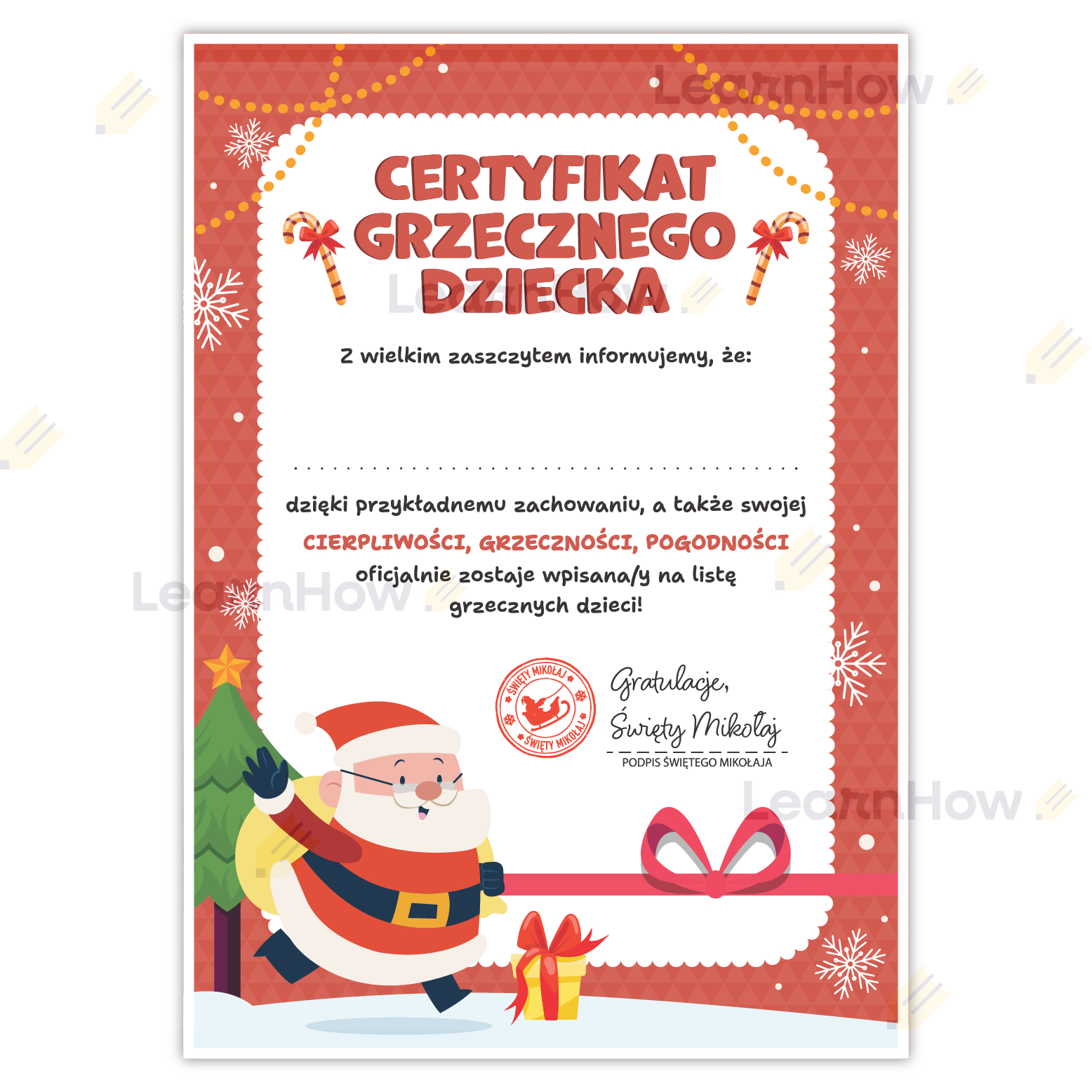 Dyplom świąteczny z motywem listu od Mikołaja to idealny dodatek aby urozmaicić dziecku Święta Bożego Narodzenia!