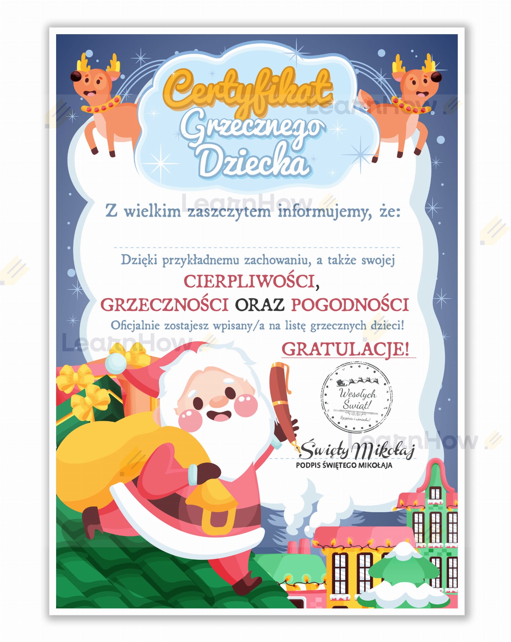 Certyfikat grzecznego dziecka, idealny skromny podarunek na zbliżające się mikołajki lub święta Bożego Narodzenia.