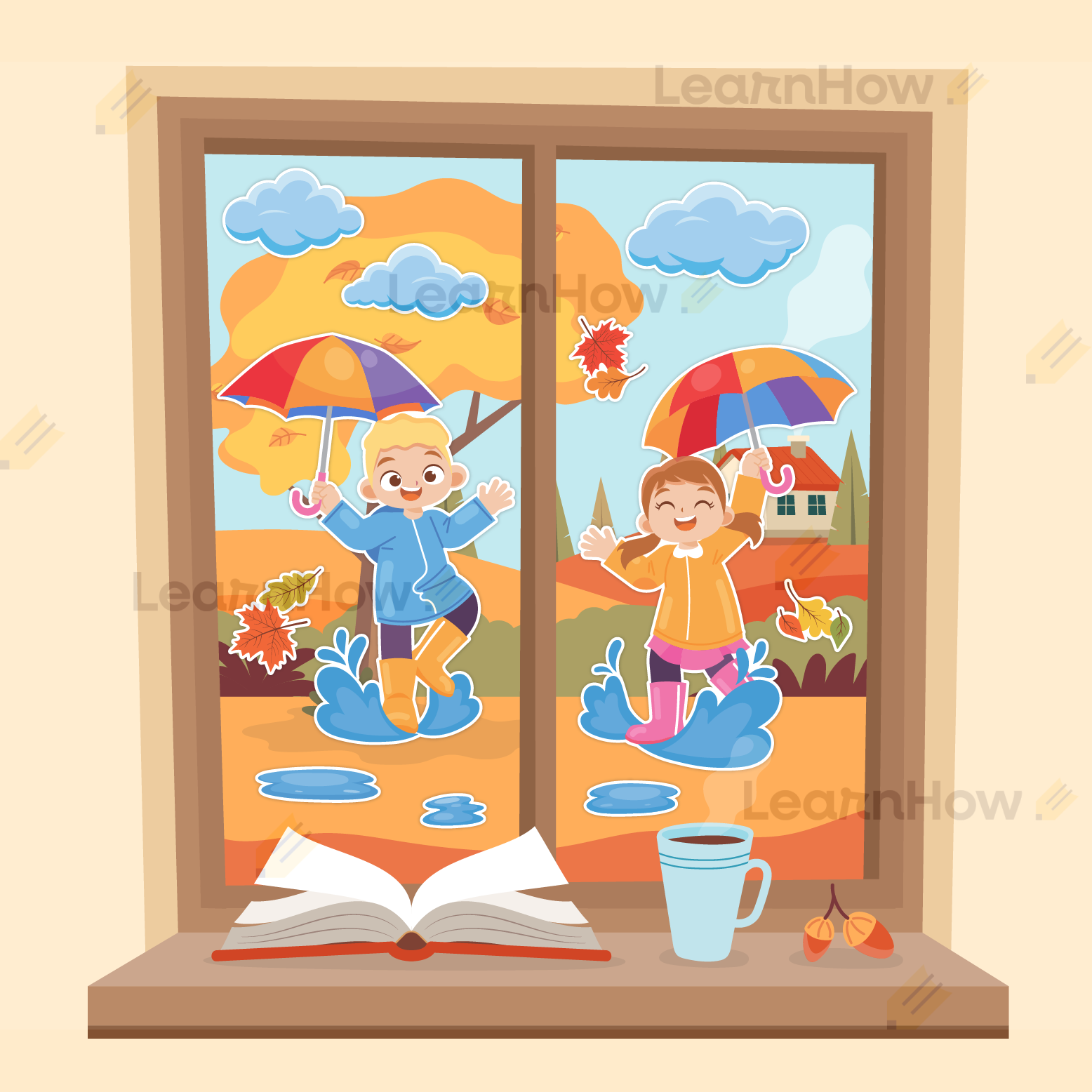 Zestaw składa się z 2 dzieci, 3 chmurek i innych jesiennych elementów - idealne do jesiennej dekoracji szkoły i przedszkola.