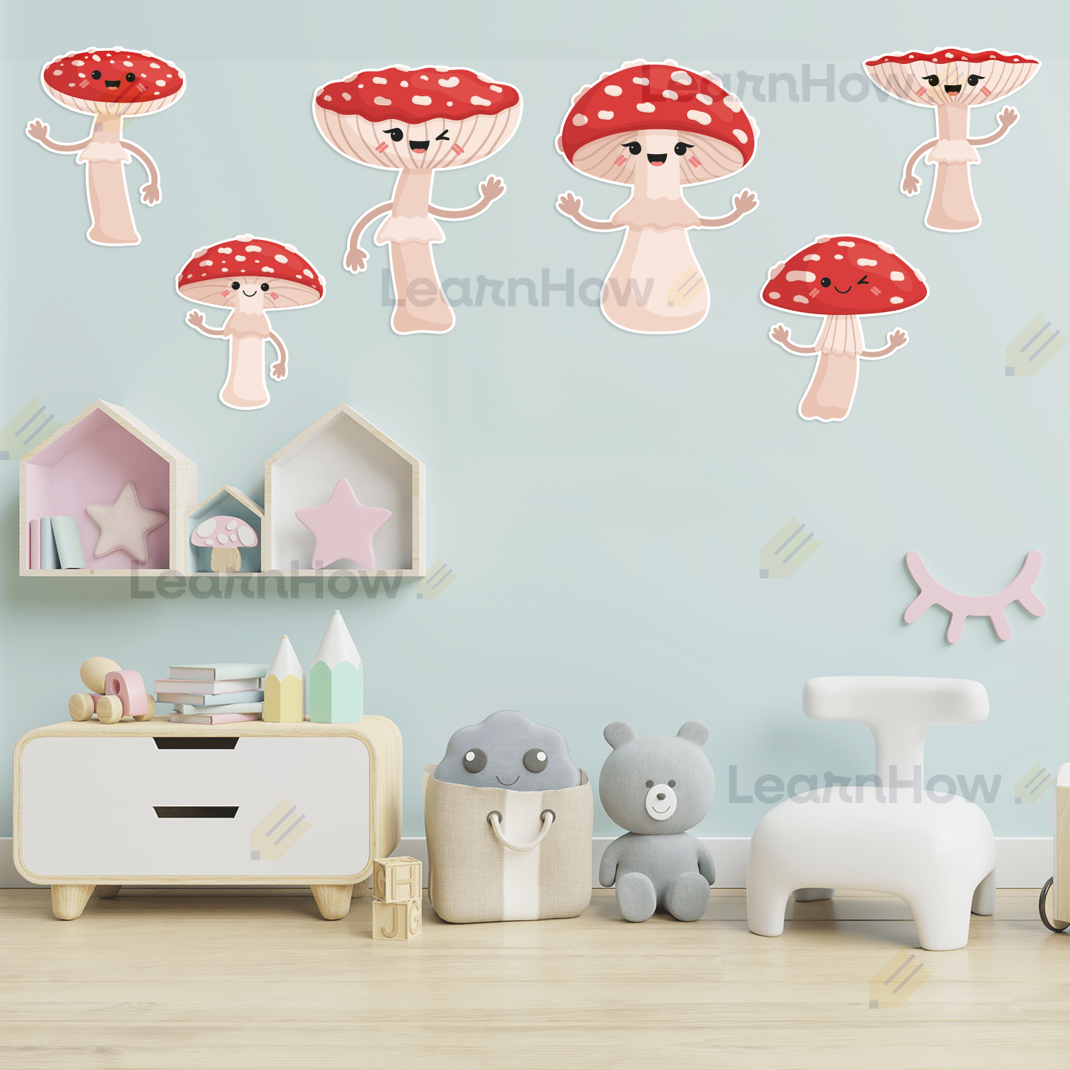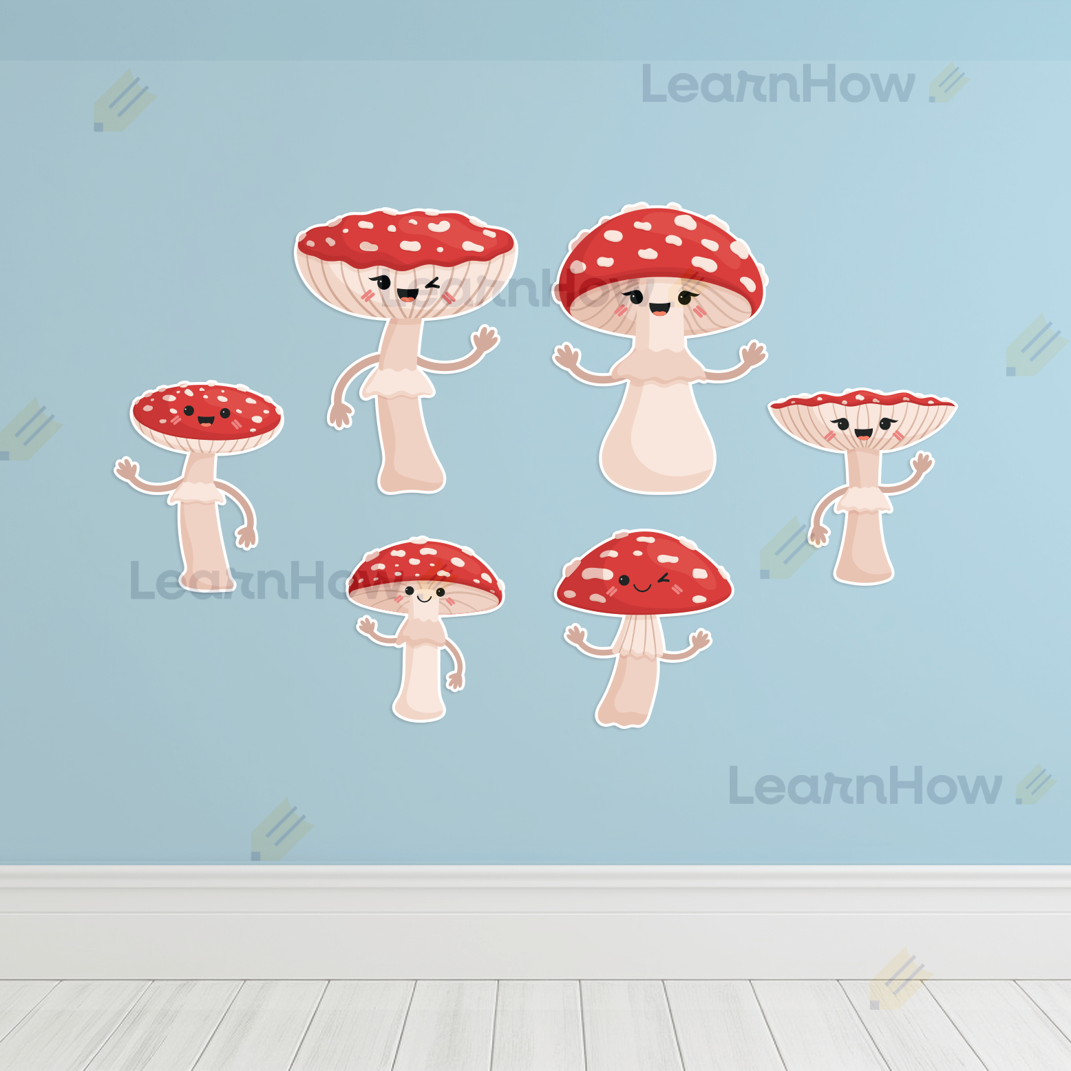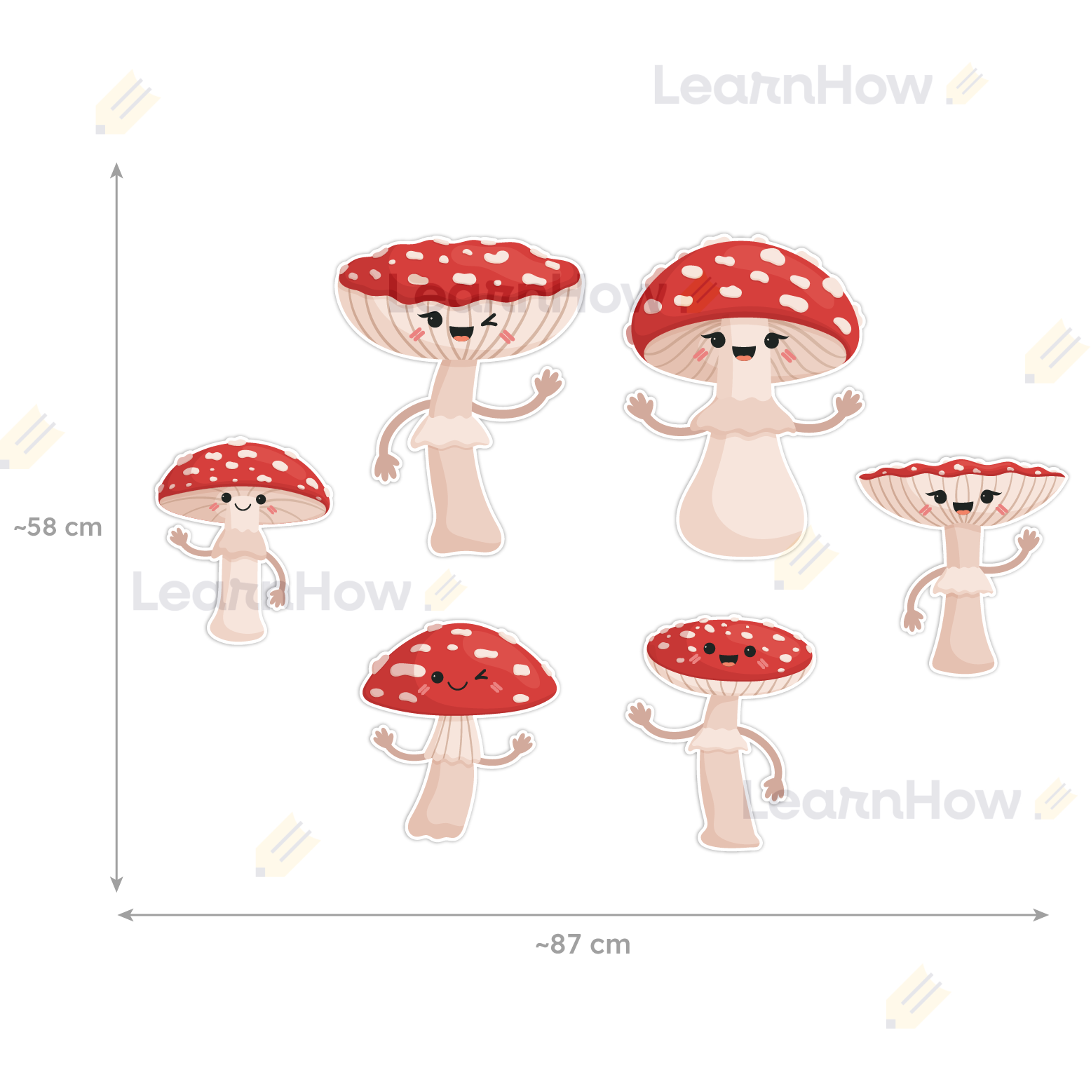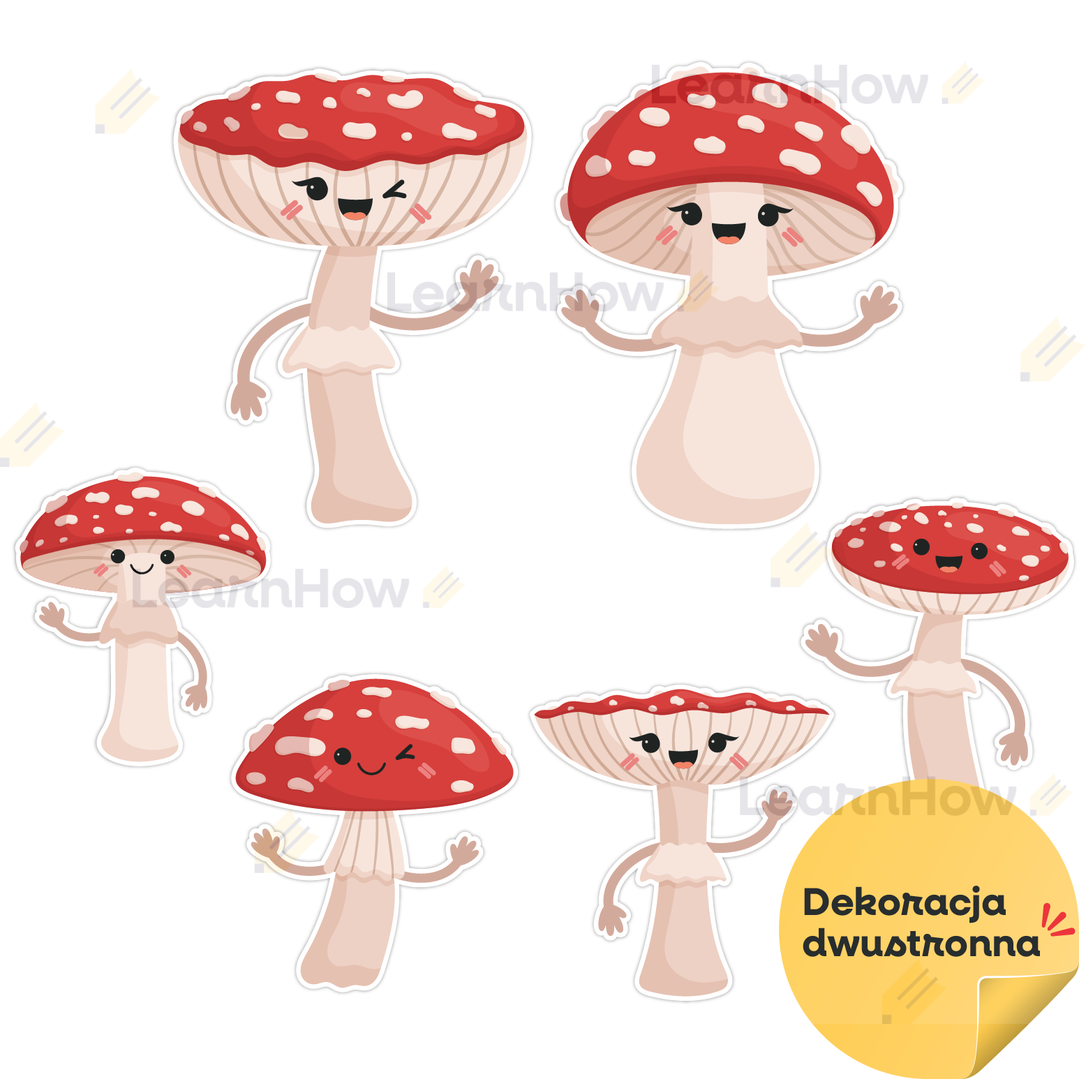 Zestaw składa się z 6 uśmiechniętych muchomorów - idealne do jesiennej dekoracji szkoły i przedszkola.