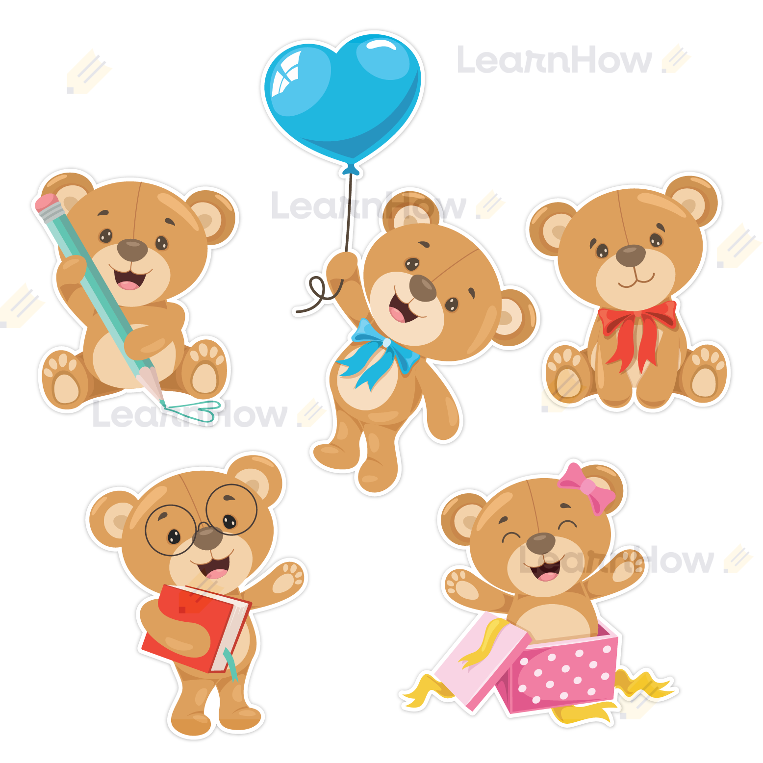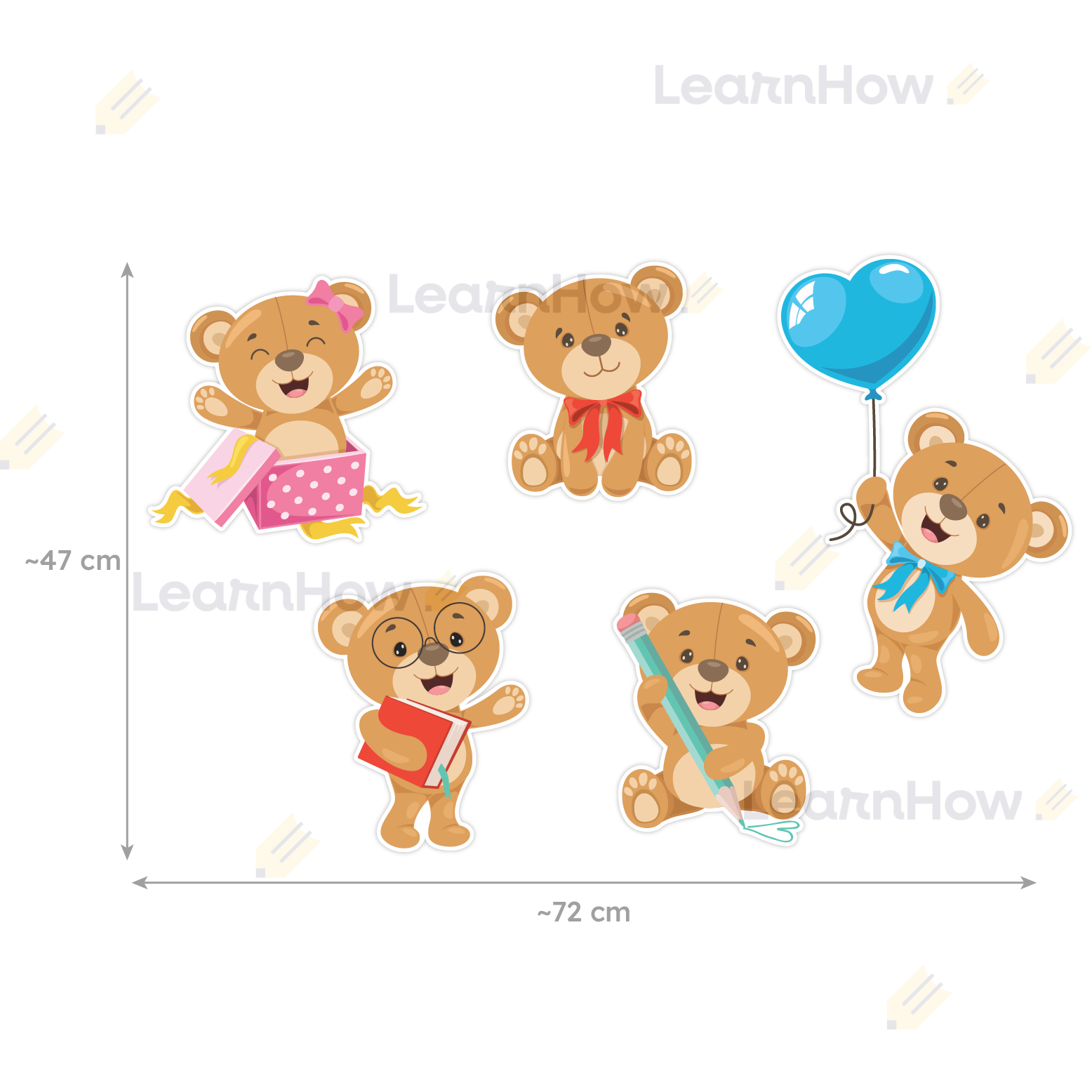 Zestaw składa się z 5 pluszowych misiów - idealne do dekoracji szkoły i przedszkola.