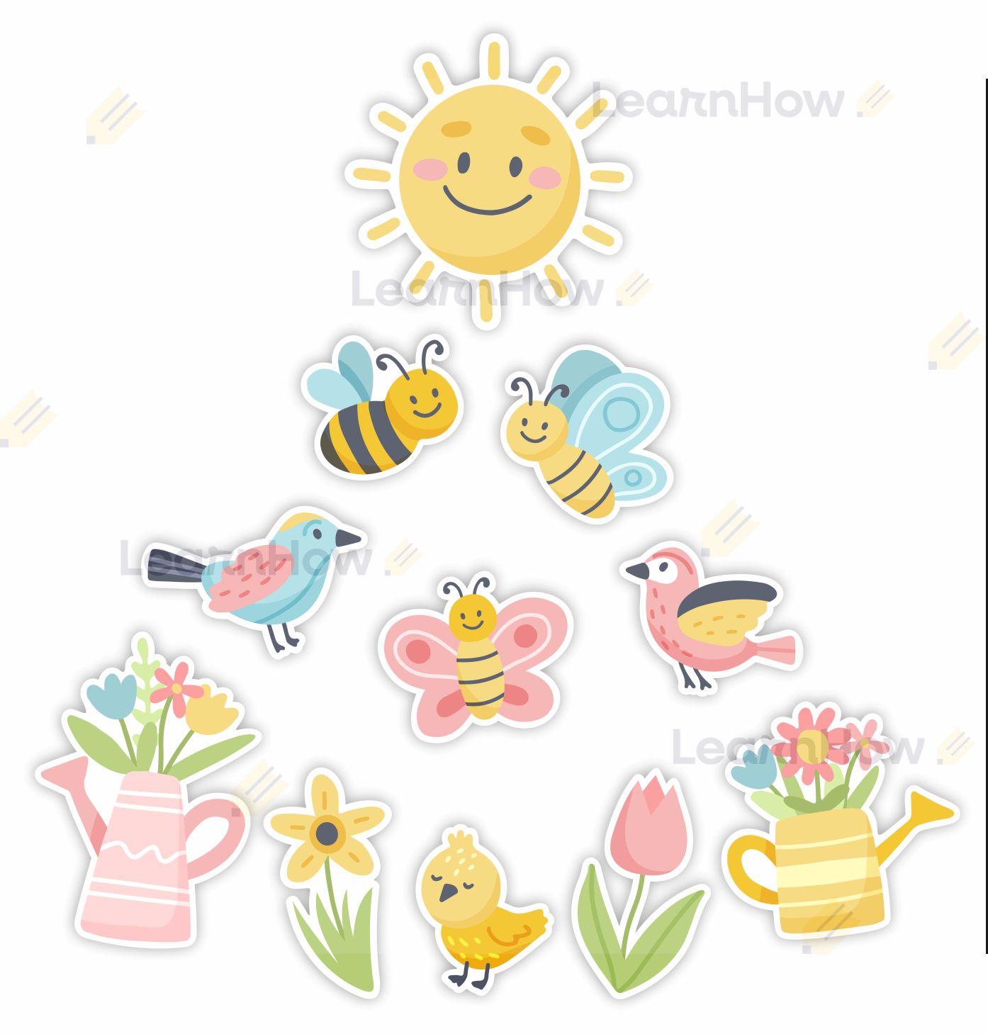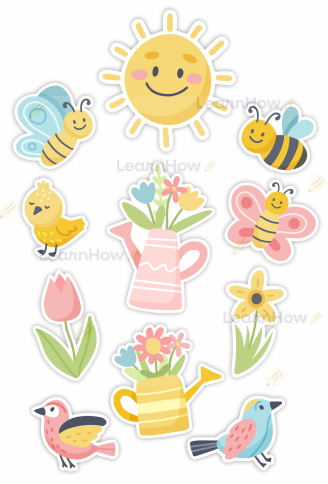 Zestaw składa się z 11 różnych elementów - idealne do wiosennej dekoracji szkoły i przedszkola.