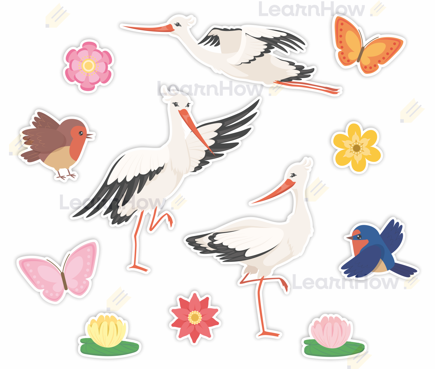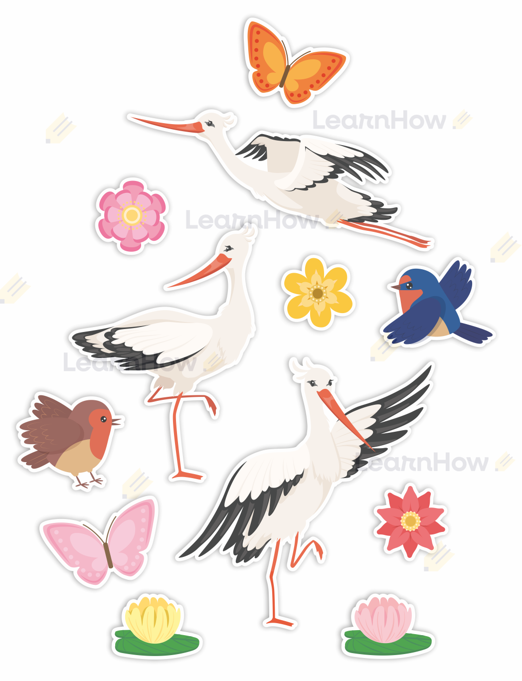 Duże bociany, kwiatki, ptaszki, motylki - idealna dekoracyjna kompozycja wiosenna!