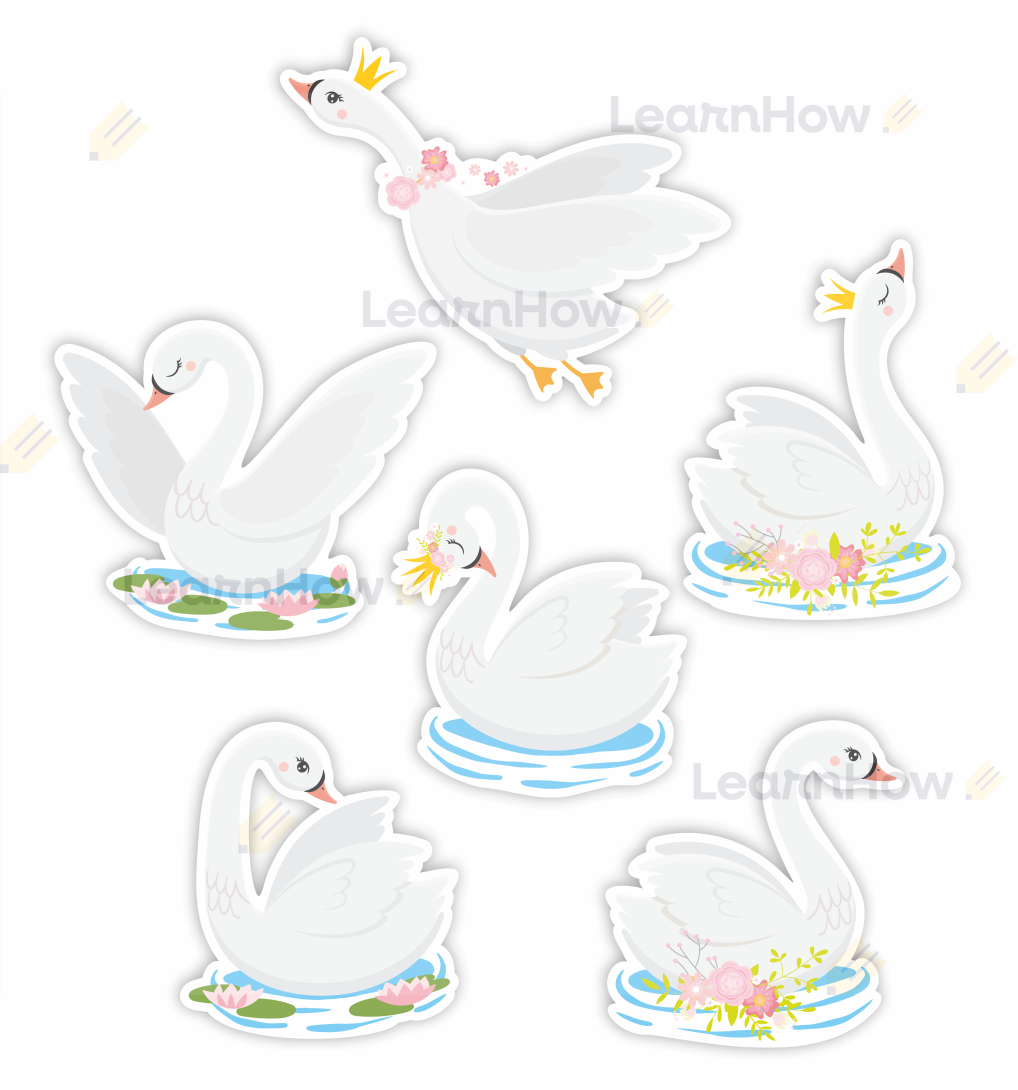 Zestaw składa się z 6 różnych Łabędzi - idealne do wiosennej dekoracji szkoły i przedszkola.