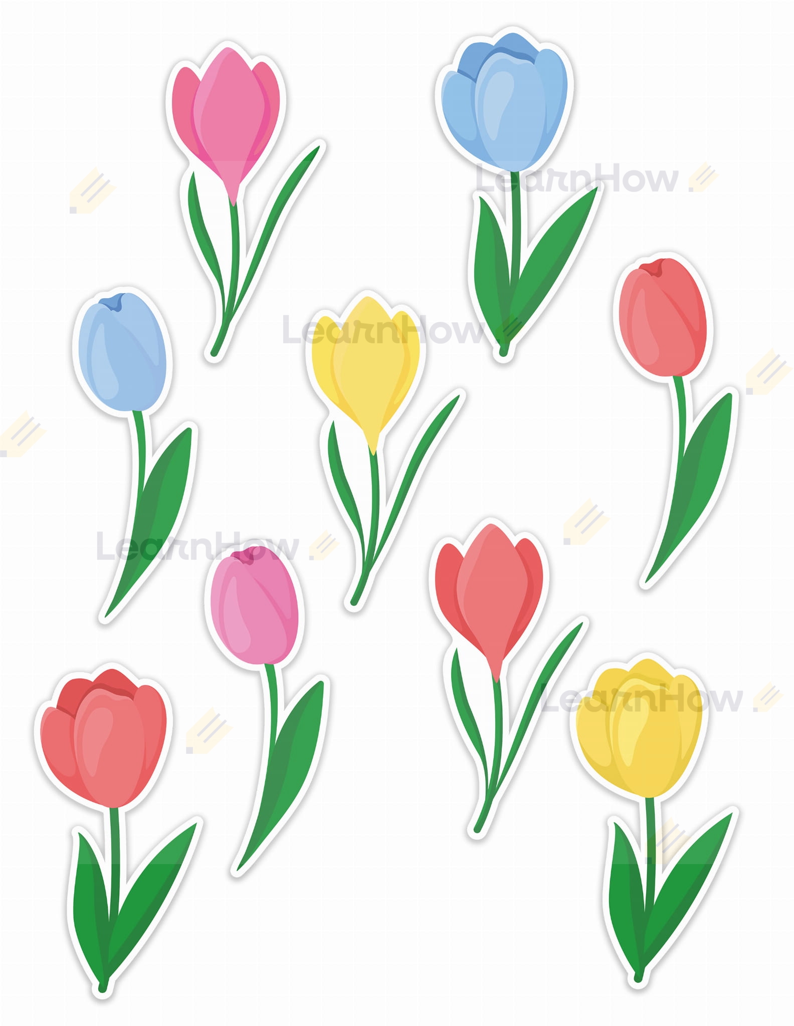 Zestaw składa się z ozdobnego 9 kolorowych tulipanów.