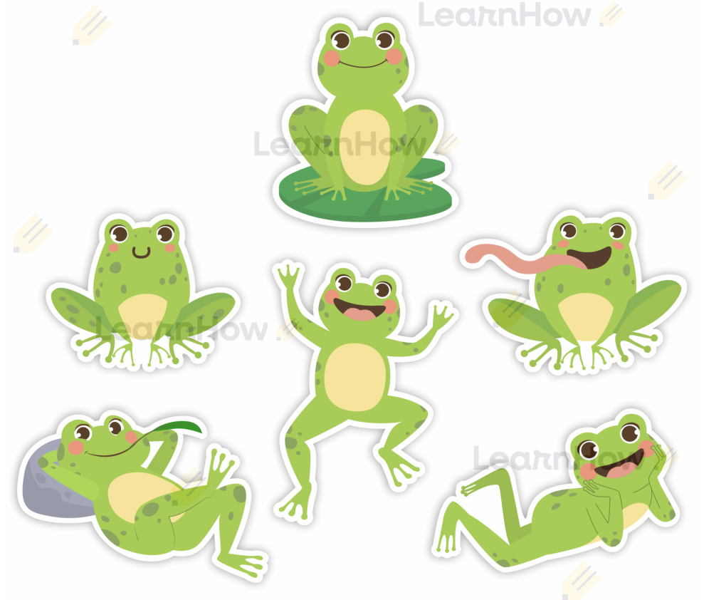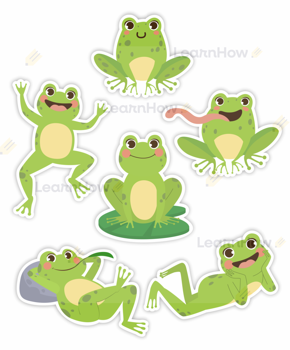 Zestaw składa się z 6 żabek w różnych pozycjach - idealne do wiosennej dekoracji szkoły i przedszkola.