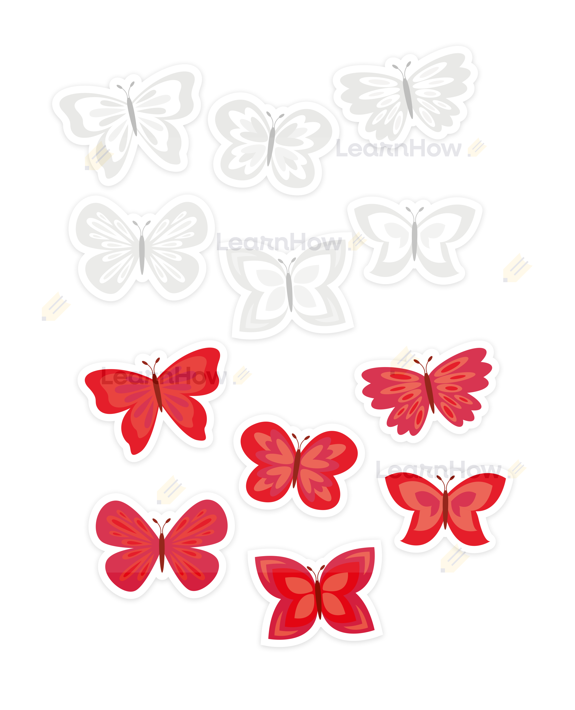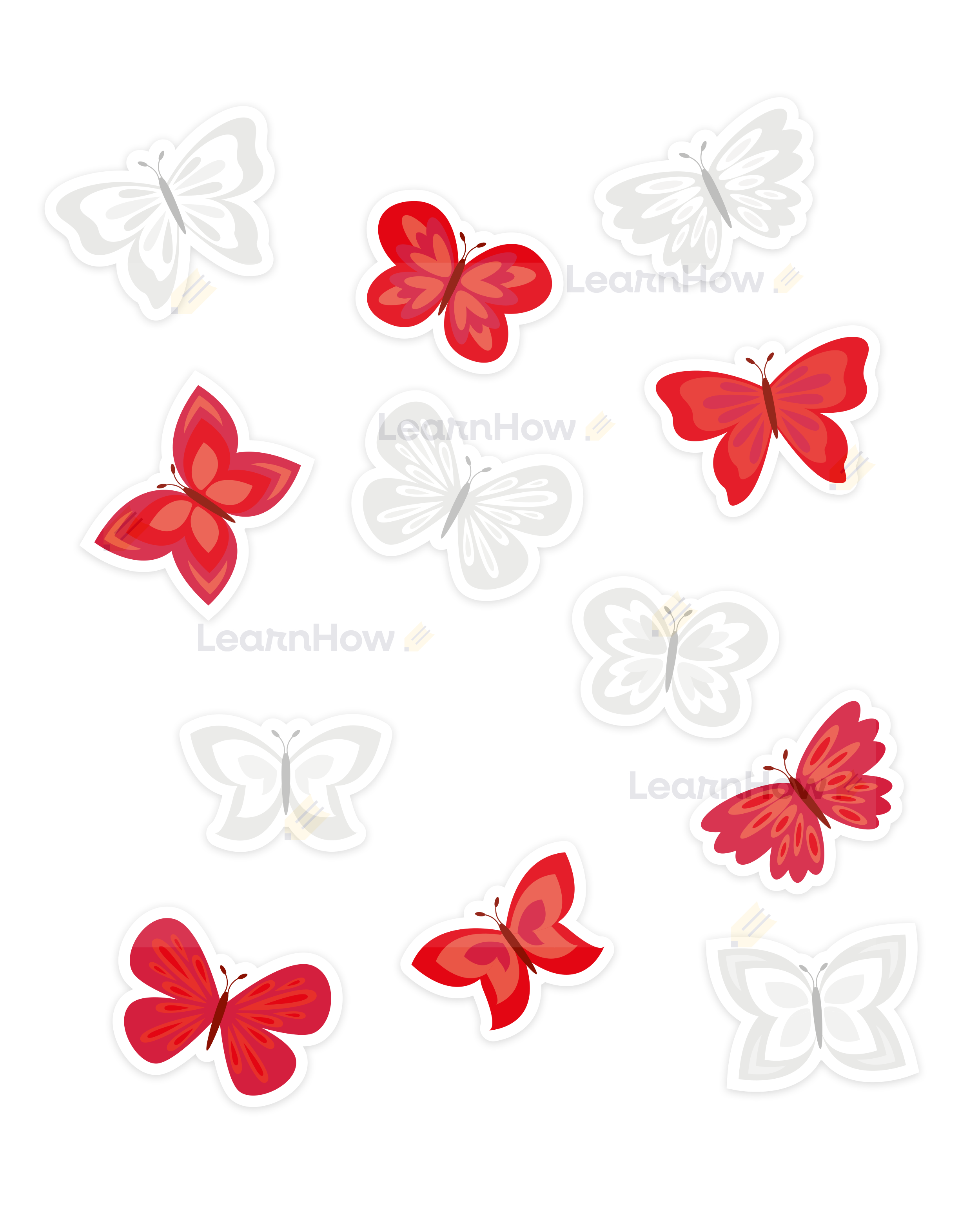 Zestaw składa się z ozdobnych 12 białych oraz czerwonych motyli.