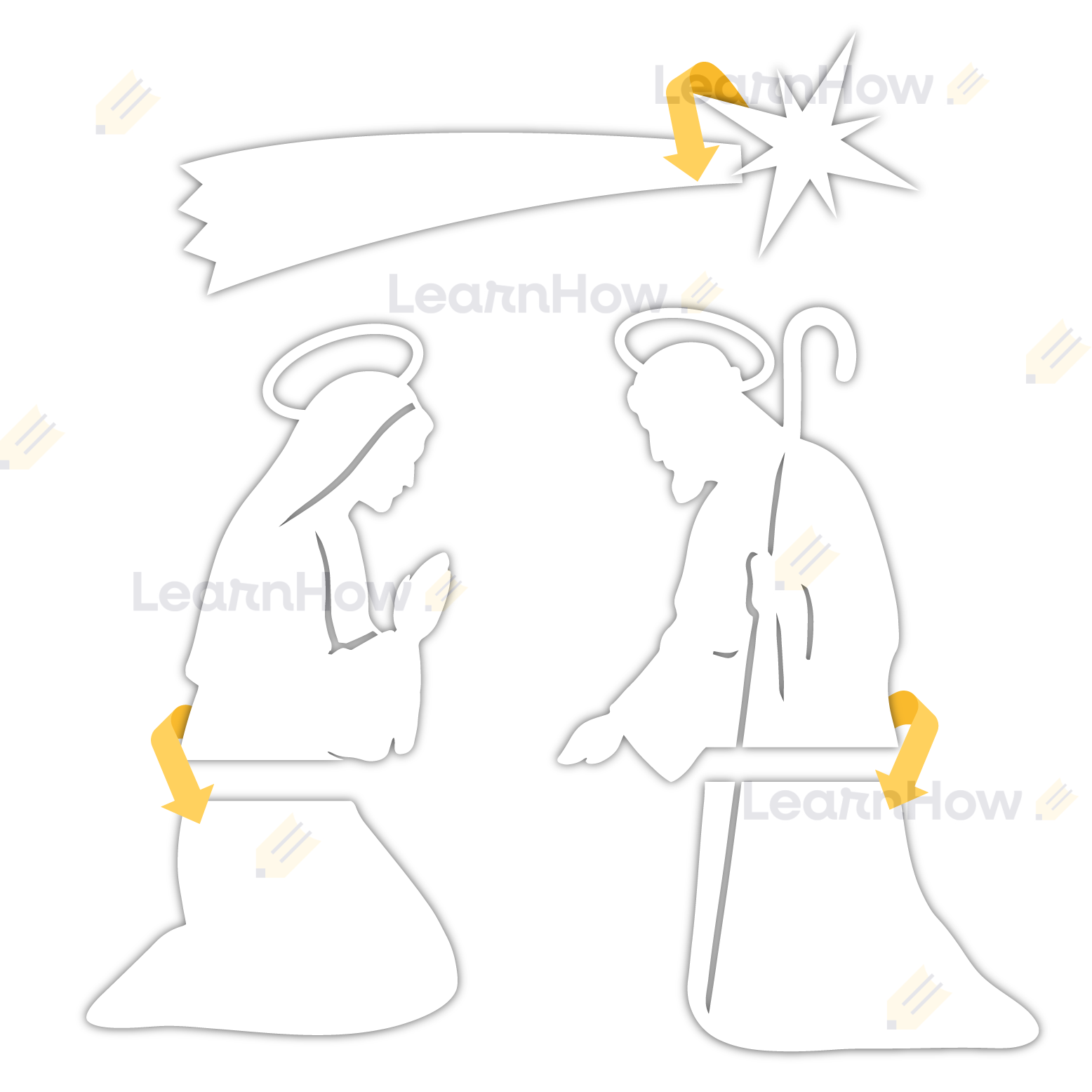 Postać Maryi, Józefa oraz gwiazdy betlejemskiej składa się z 2 części, wystarczy je razem złożyć.