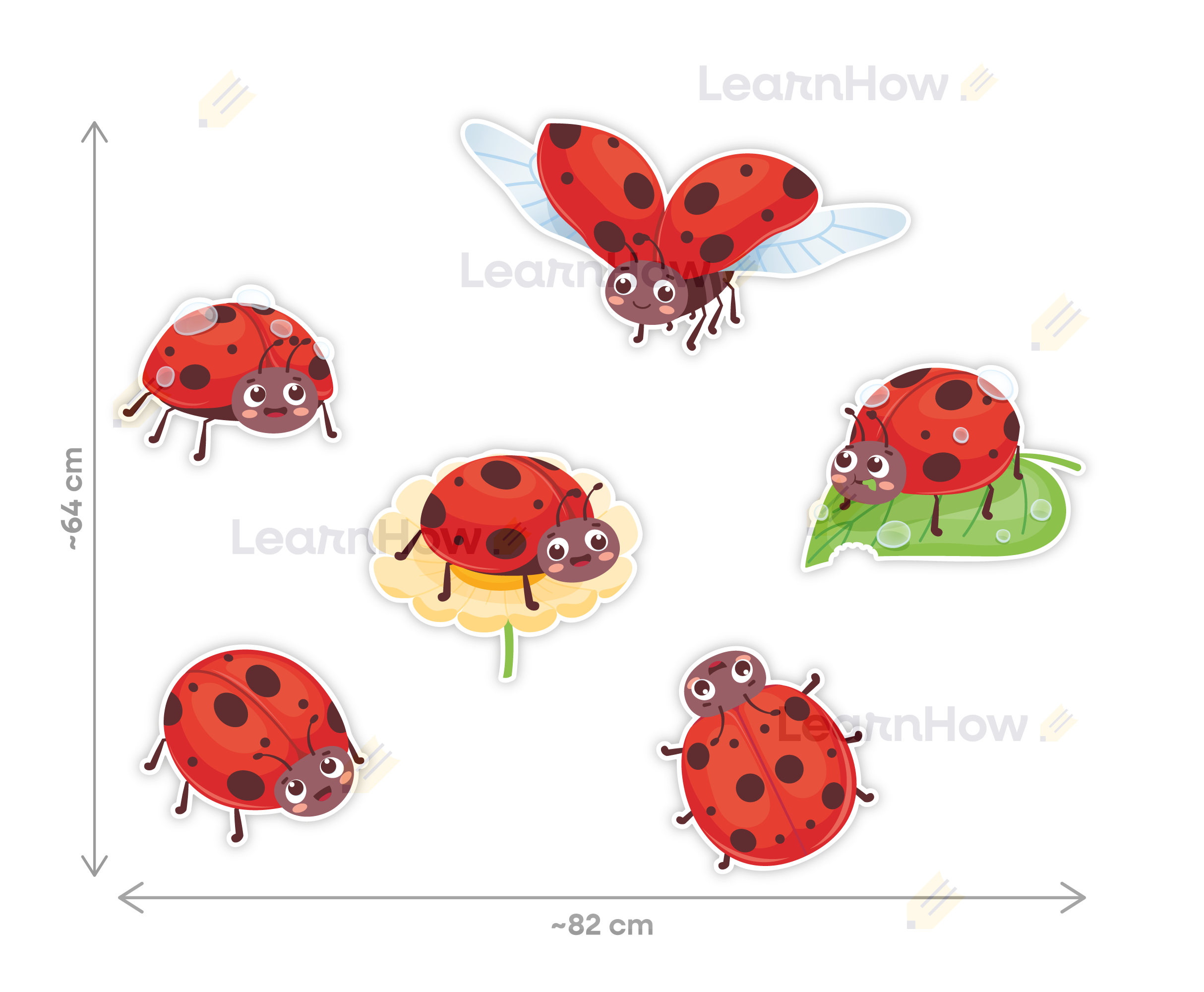 Zestaw składa się z 6 różnych dużych biedronek. Idealny do wiosennej dekoracji szkoły czy przedszkola.