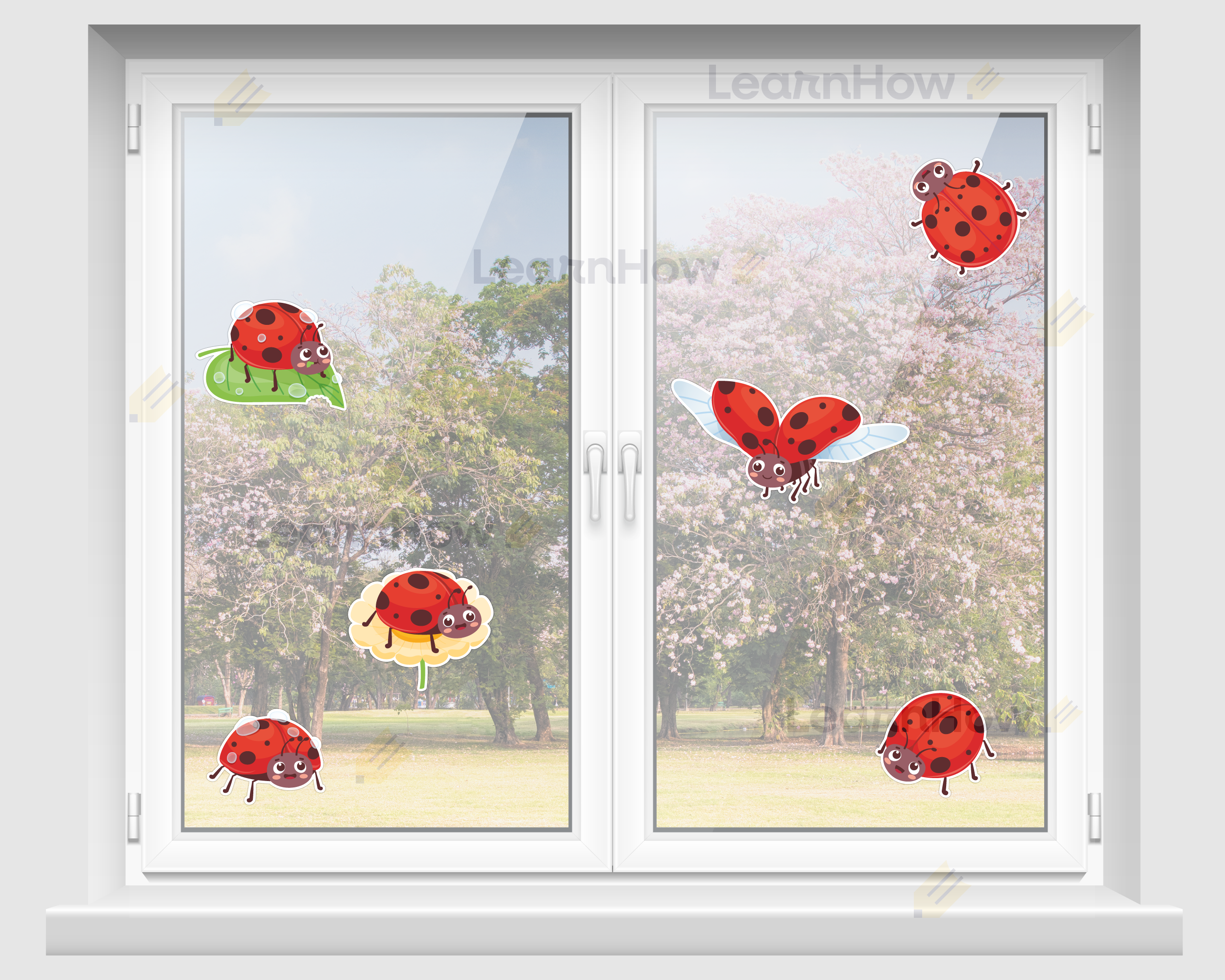 Na oknie możemy przymocować je za pomocą dwustronnych przeźroczystych kropek klejowych, które są niewidoczne.