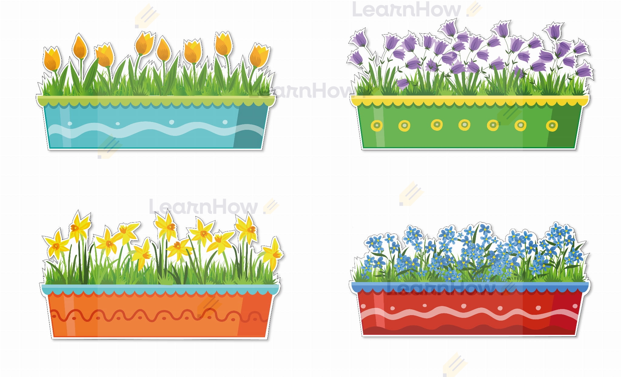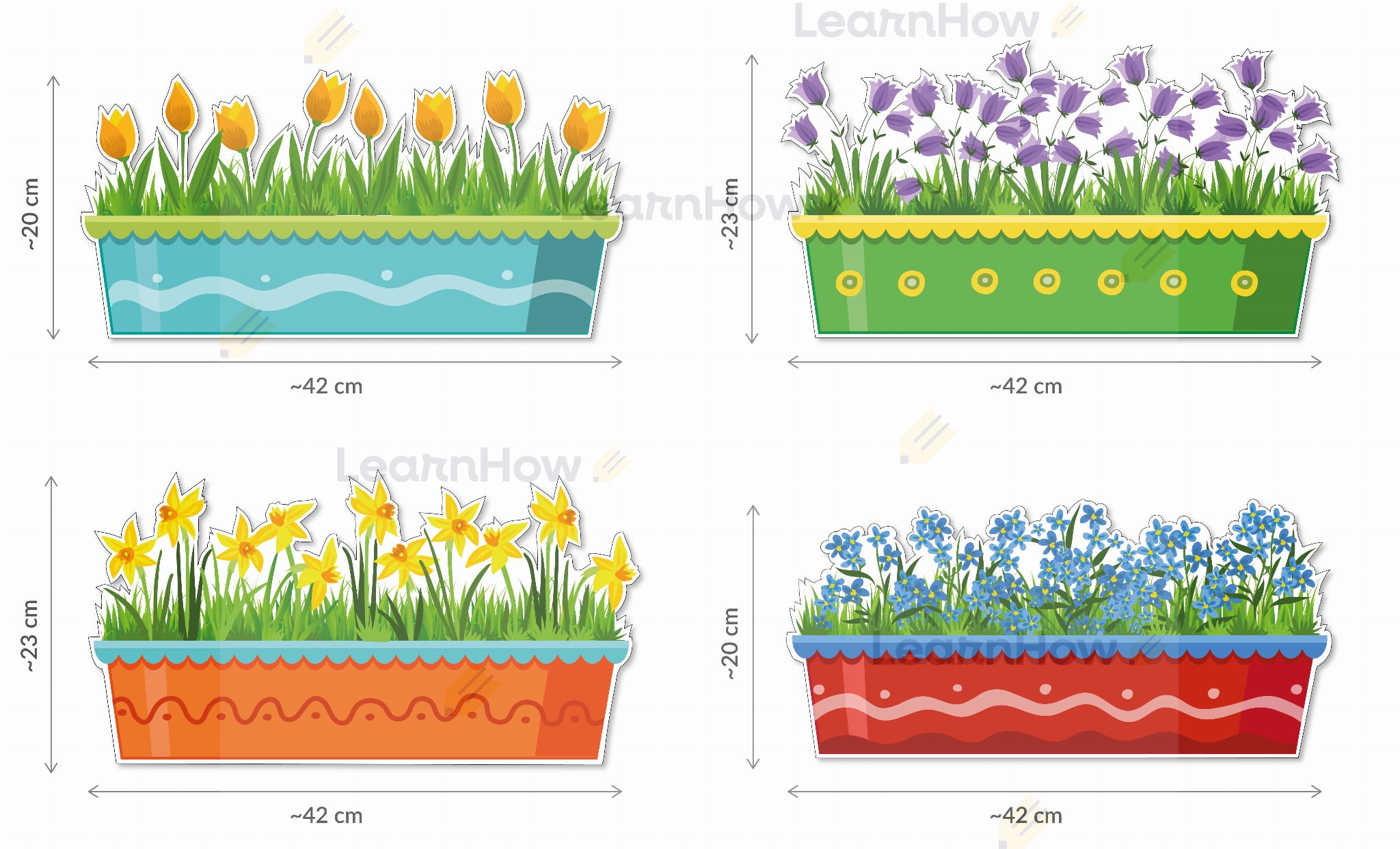 Zestaw składa się z 4 różnych kwiatki w doniczce - idealne do wiosennej dekoracji szkoły i przedszkola.