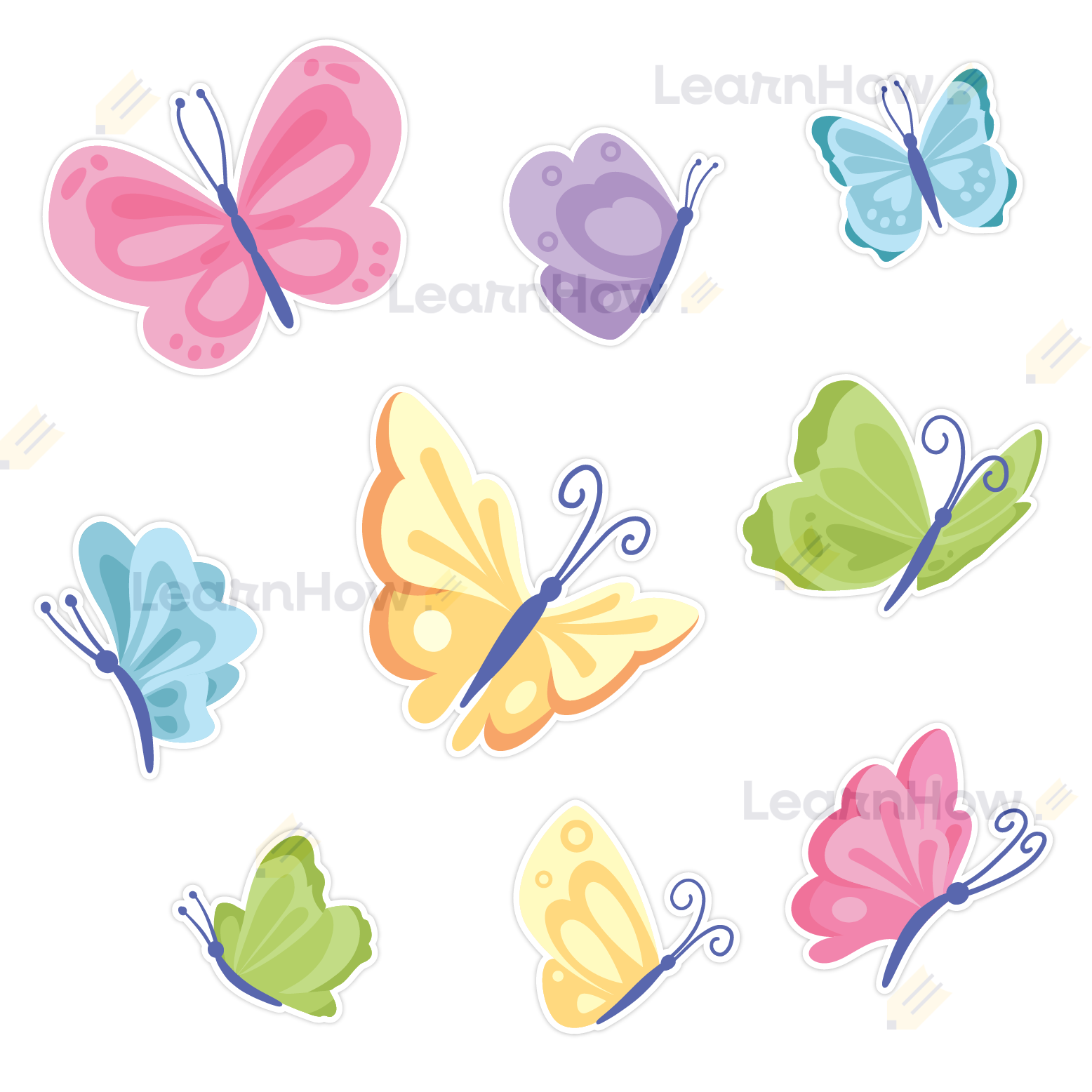 Zestaw dekoracji składa się z 9 różnych motylków - idealne do wiosennej dekoracji szkoły i przedszkola.