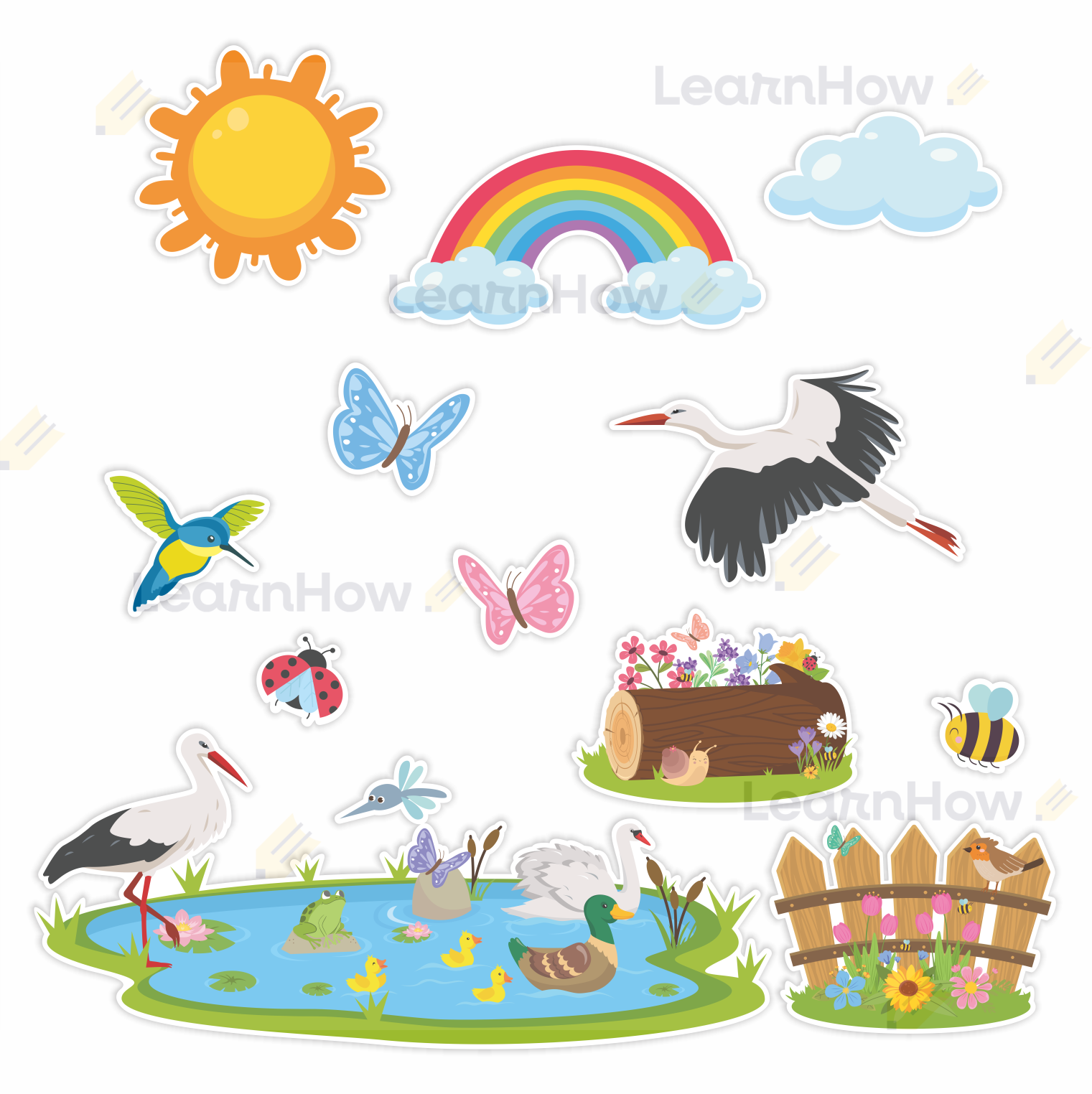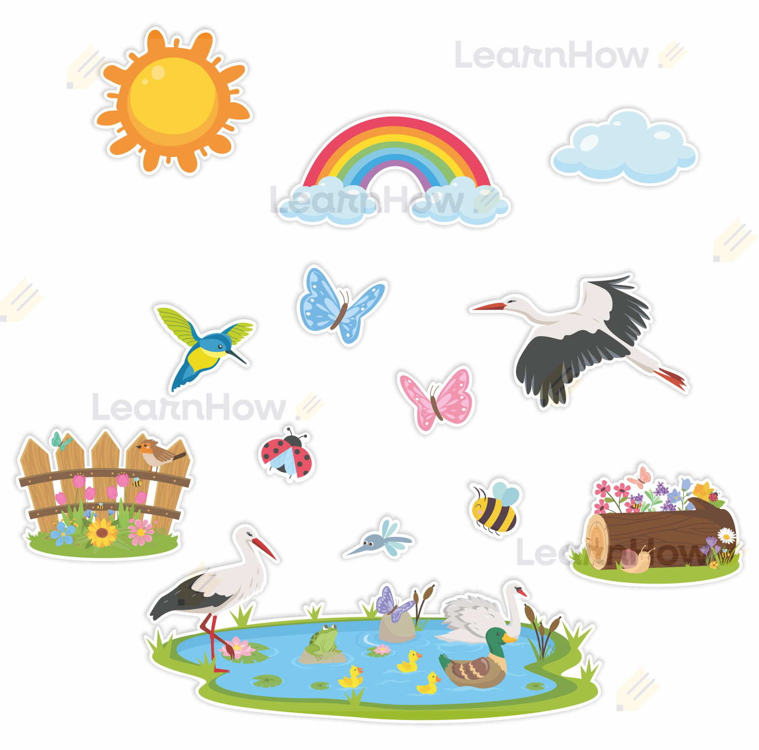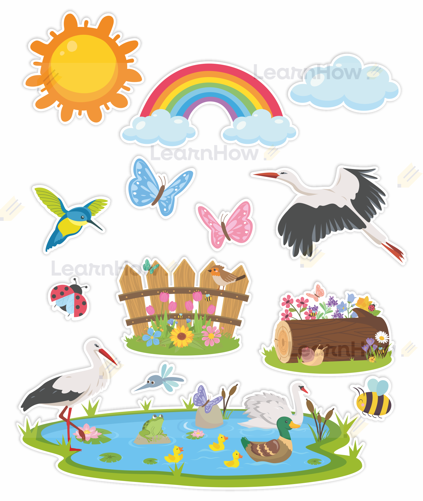 Zestaw krajobrazowy składa się z 13 elementów - pełny wiosennych kolorów, kwiatów, natury i zwierząt!