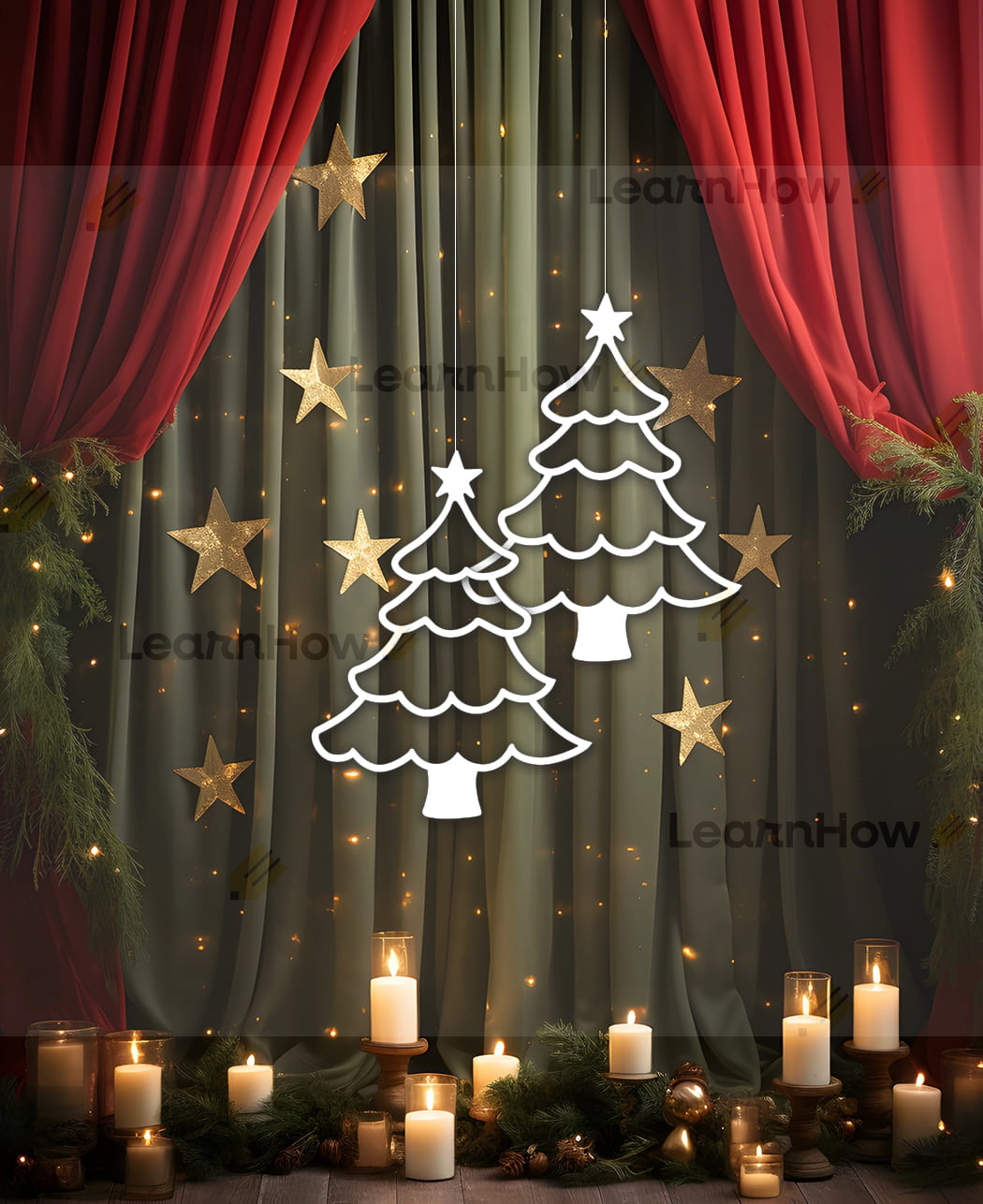 DEKORACJA ZIMOWA AŻUROWA - CHOINKI x2 (DUŻE 44 x 33 cm)