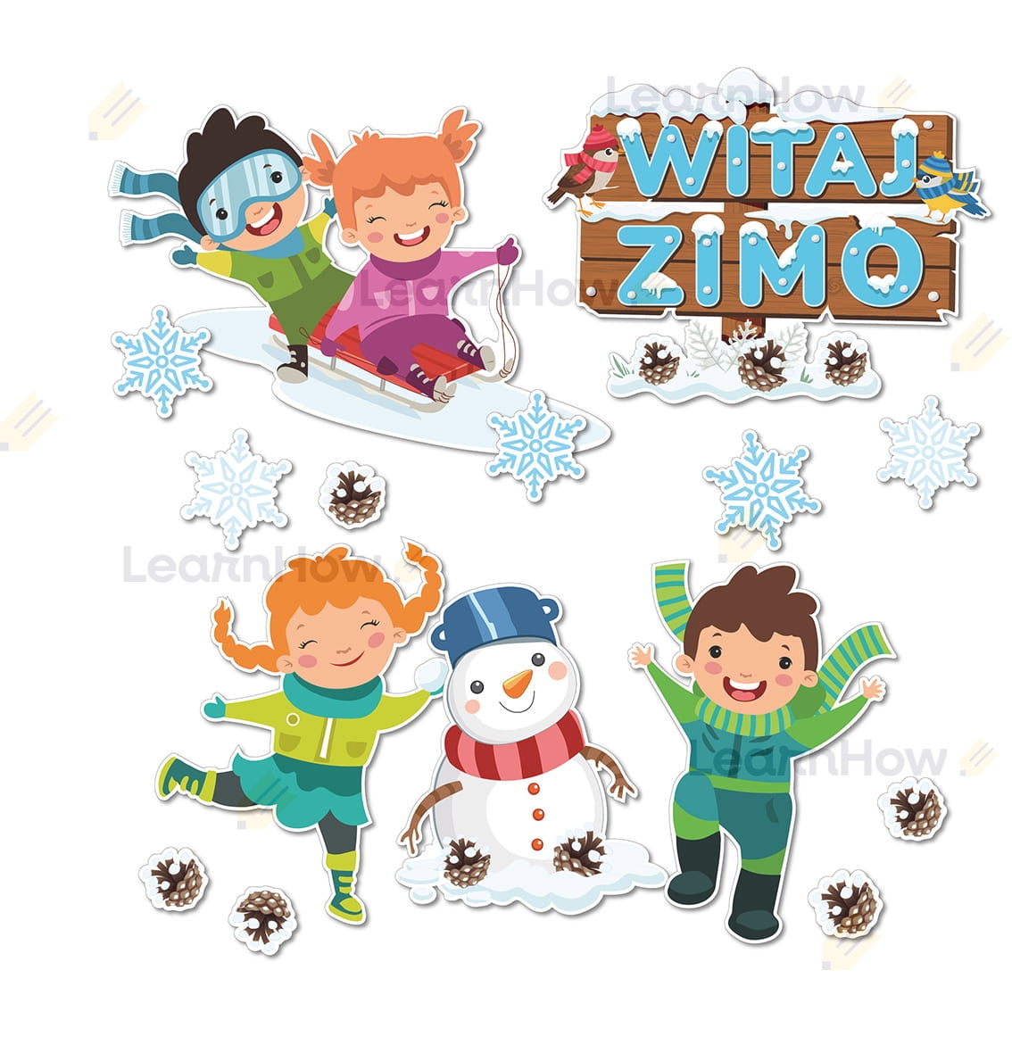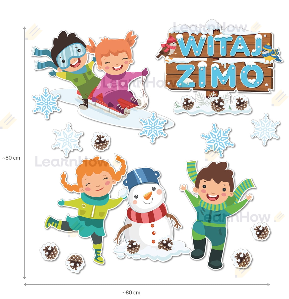 Zestaw krajobrazowy składa się z 15 elementów - w tym bardzo duży napis, dzieci na sankach, bawłanek i inne!