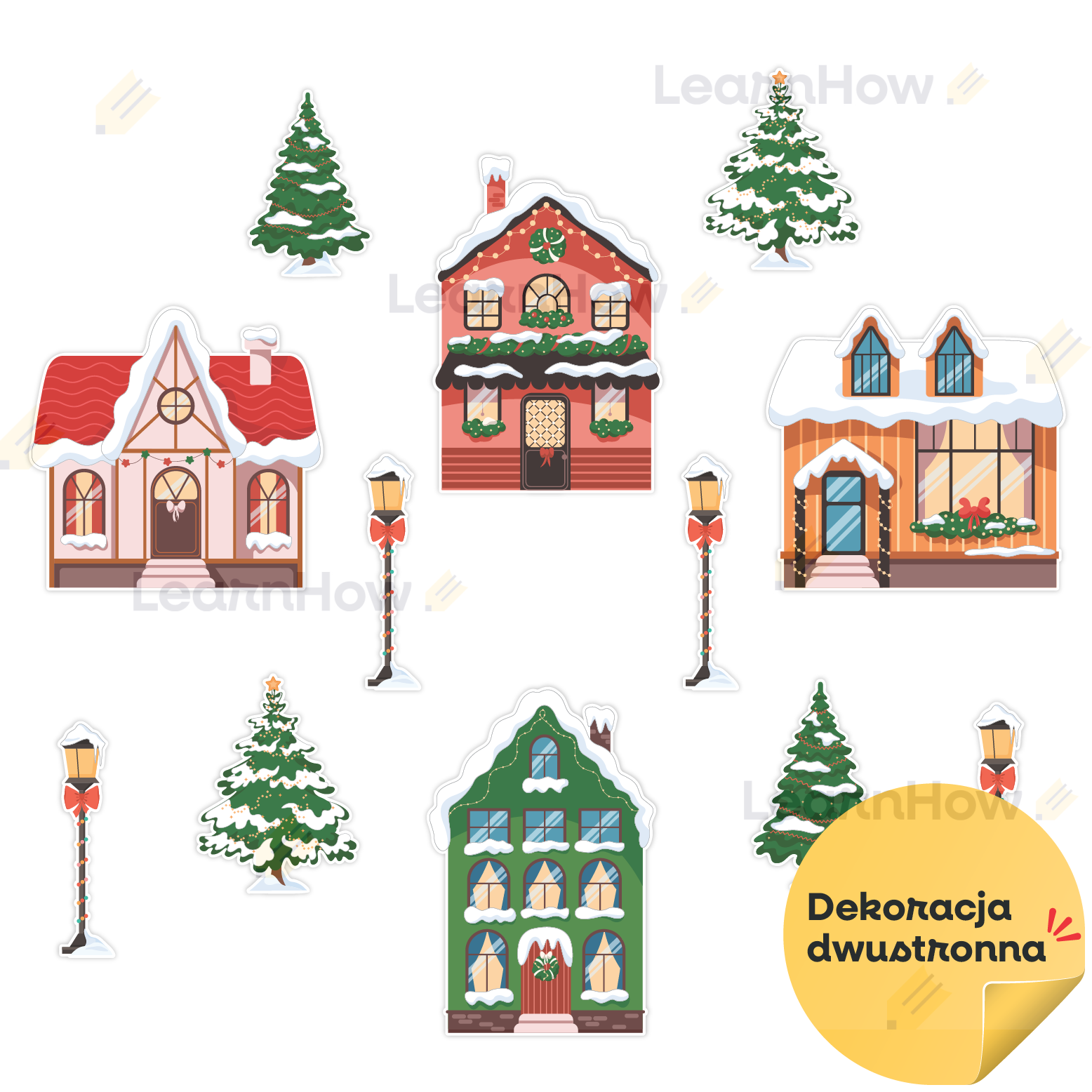 DEKORACJA ZIMOWA - ZIMOWE MIASTECZKO DOMKI (DWUSTRONNE)