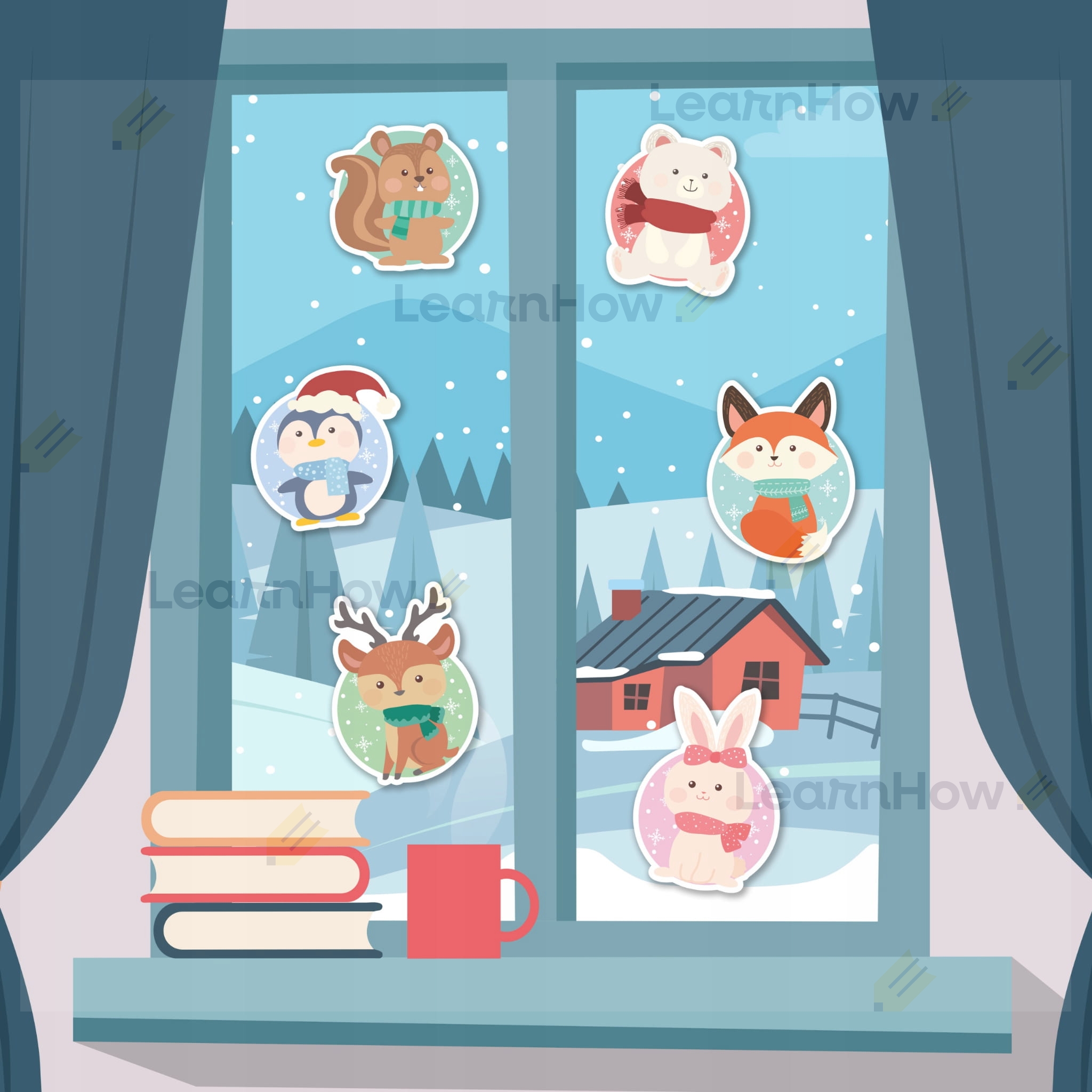 DEKORACJA NA OKNA ŚWIĄTECZNA - ZIMOWE ZWIERZAKI