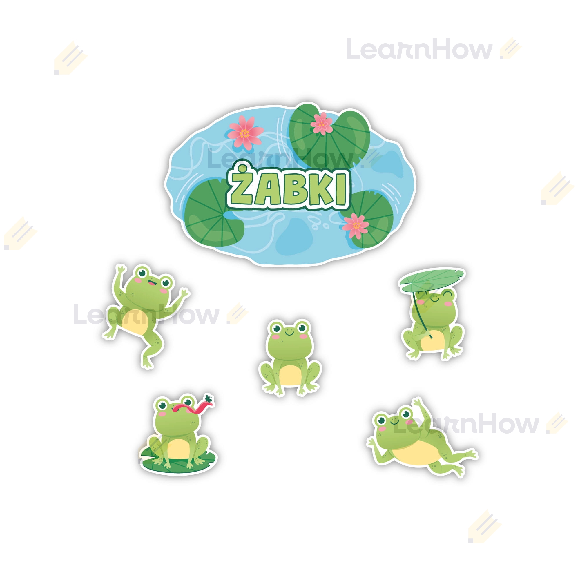 DEKORACJE KLASOWE - GRUPA ŻABKI (6 szt., jednostronne)