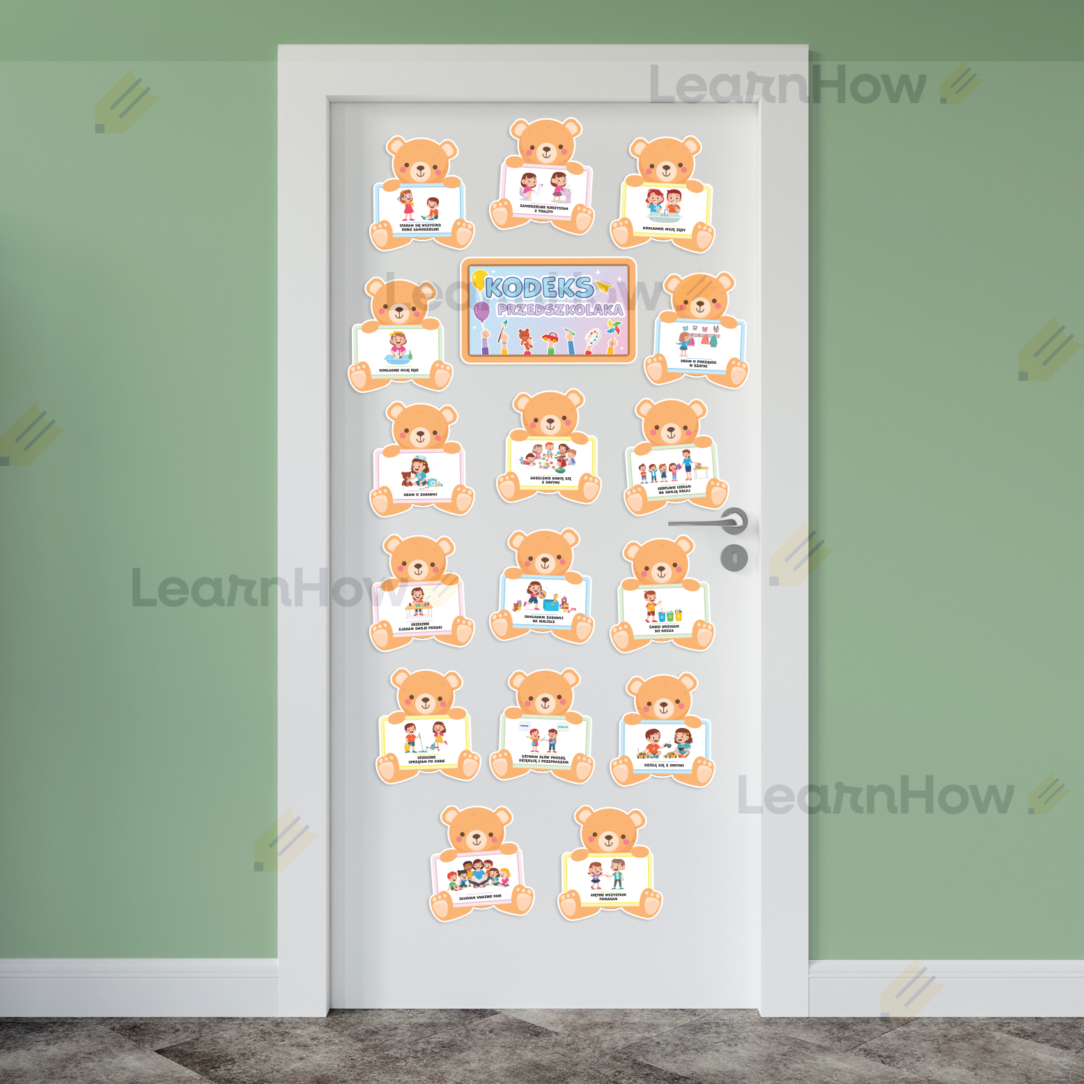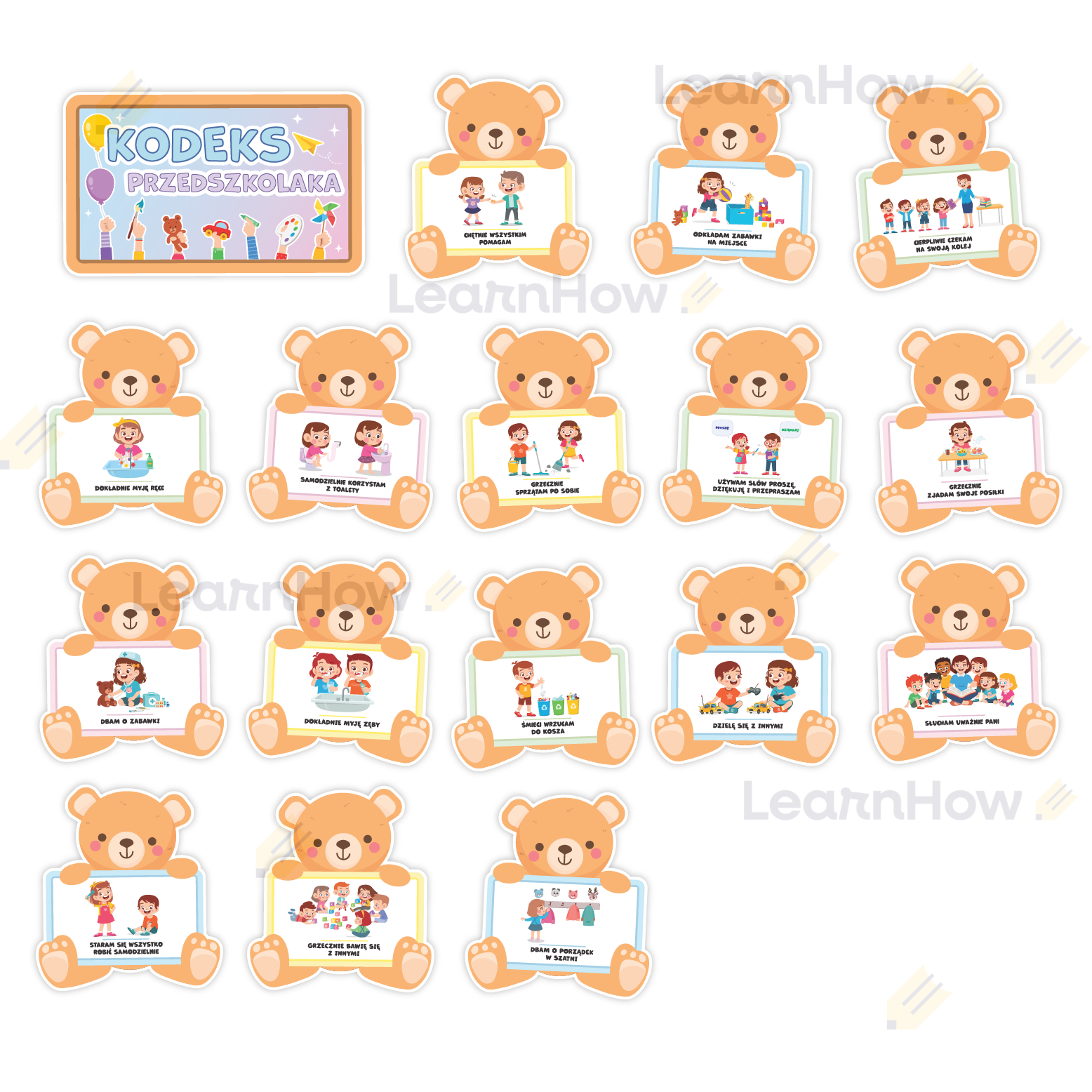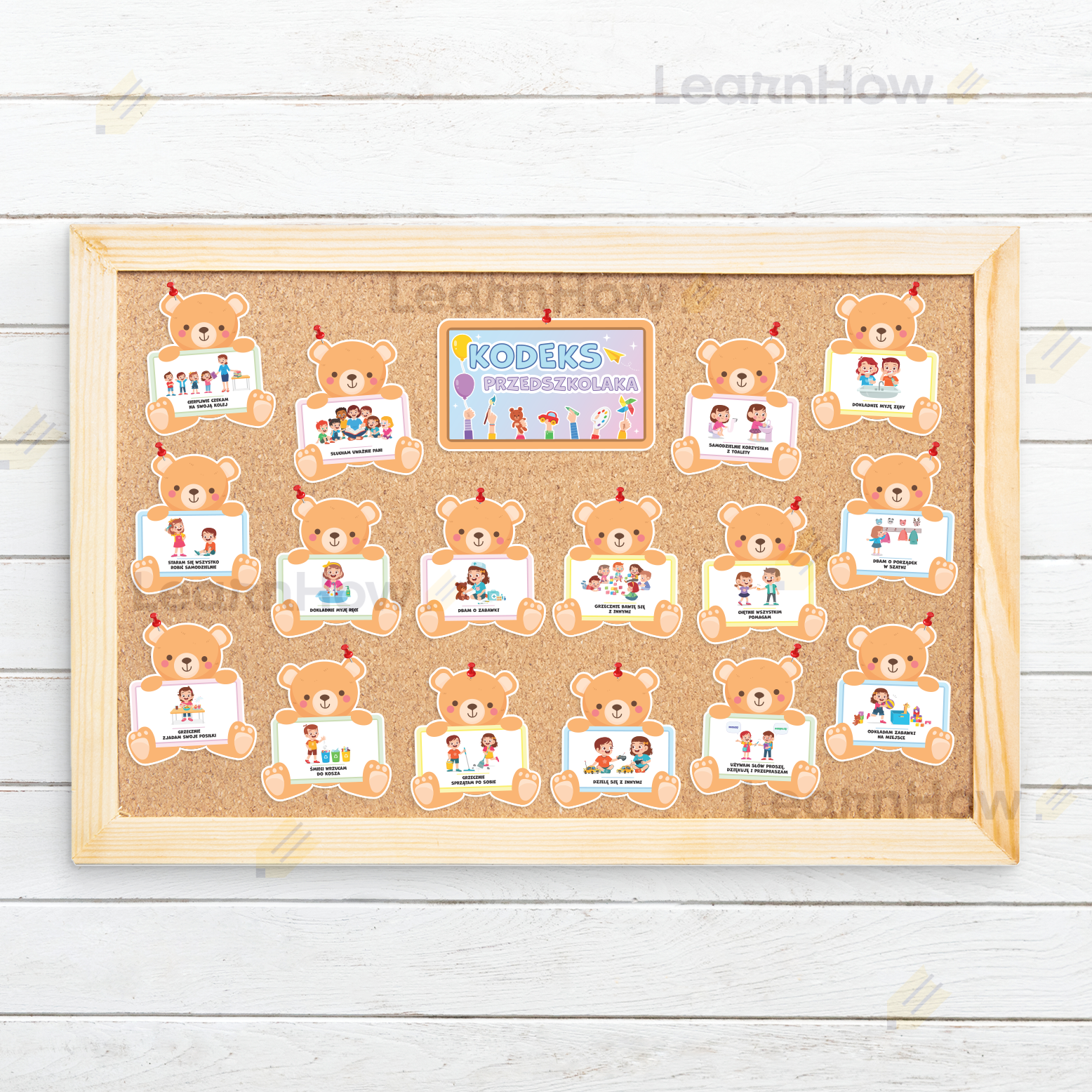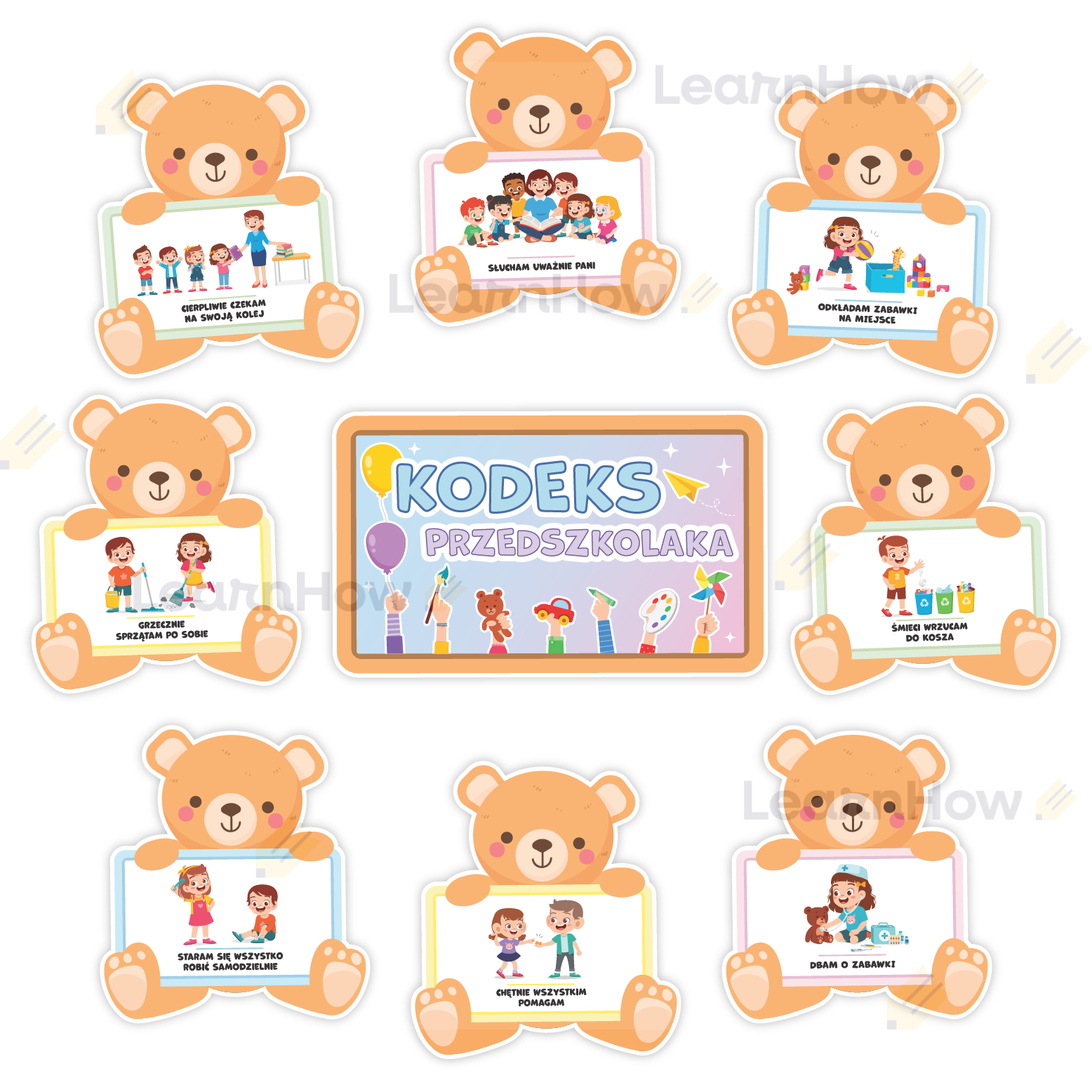 Zestaw "Kodeks przedszkolaka" z misiami będzie przypominał dzieciom o dobrym zachowaniu w przedszkolu.