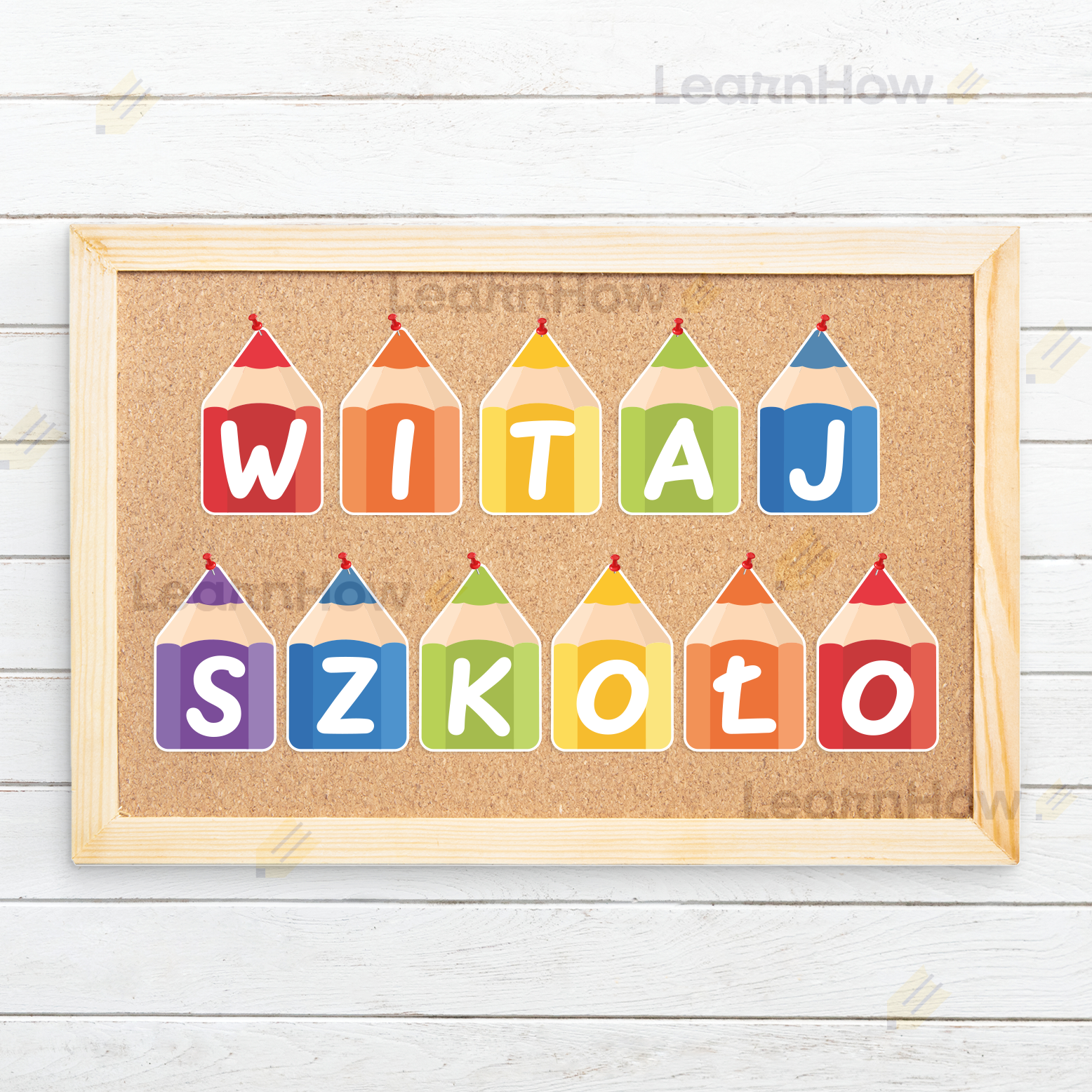 Dekoracja "Witaj szkoło" idealnie nadaje się do rozwieszania z okazji rozpoczęcia roku w szkole.