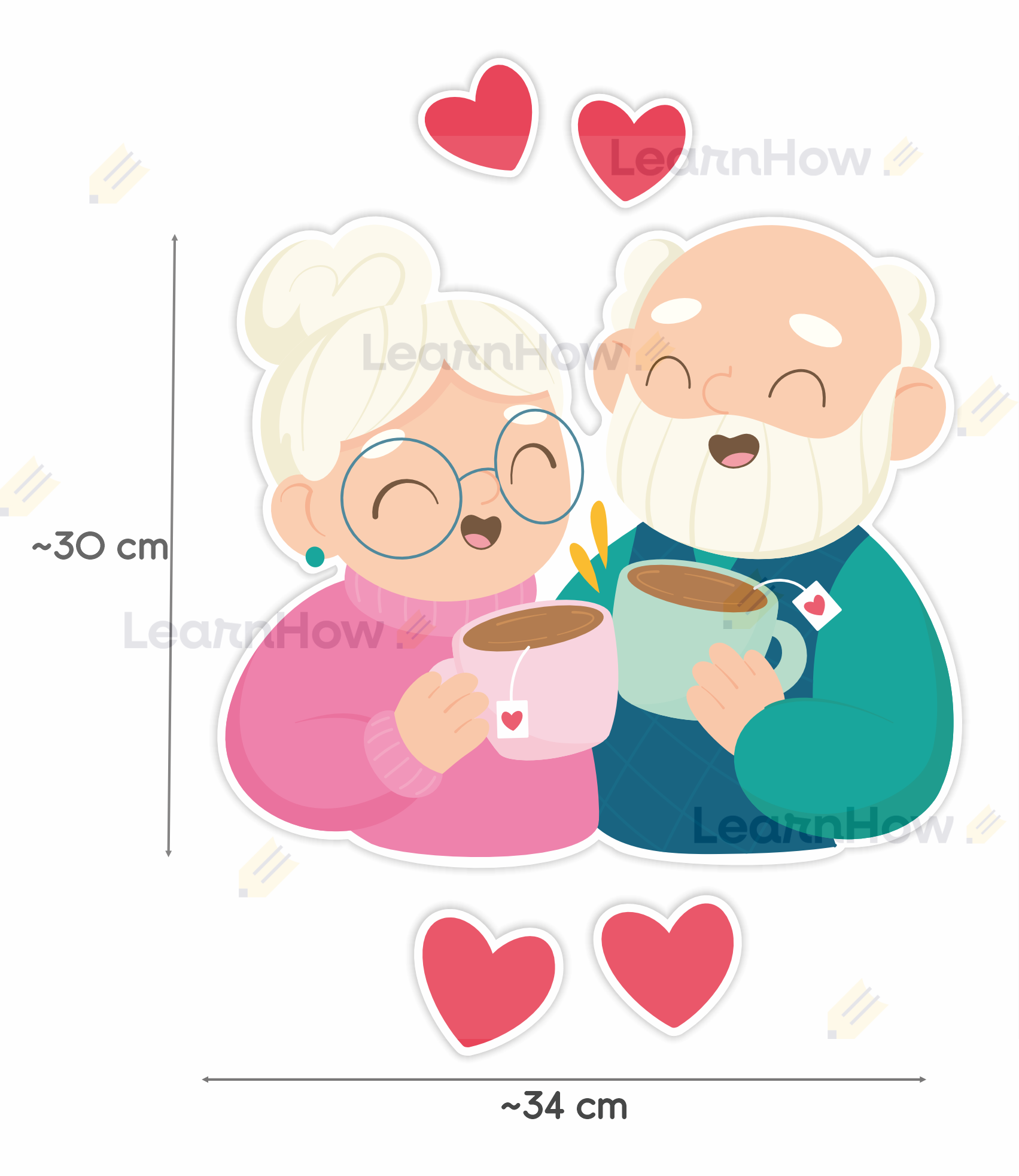 Zestaw składa się z 1 dużego elementu - Przytulających się babci i dziadka - oraz 4 serc - idealne szczególnie do szkoły i przedszkola.