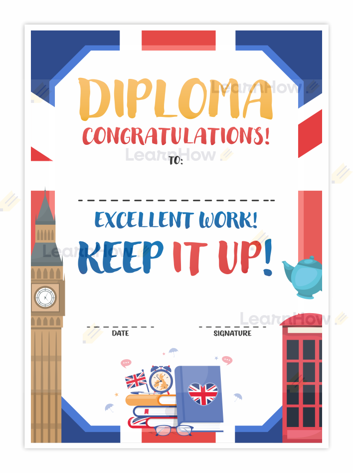 Dyplom językowy idealnie sprawdzi się jako pamiątka oraz nagroda za postępy i ciężką pracę w nauce języka angielskiego.