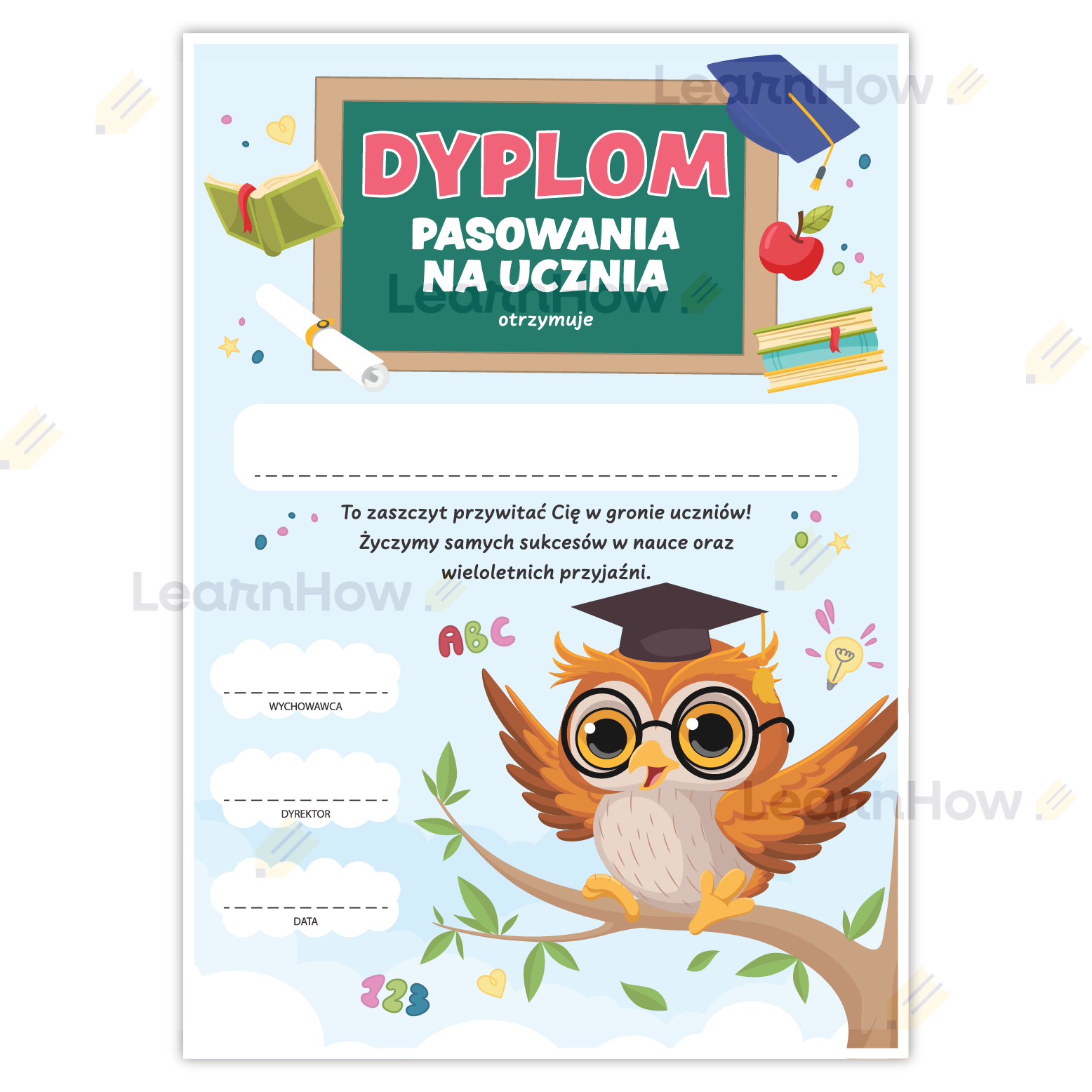 DYPLOM PASOWANIA NA UCZNIA - SOWA (DUŻY A4)