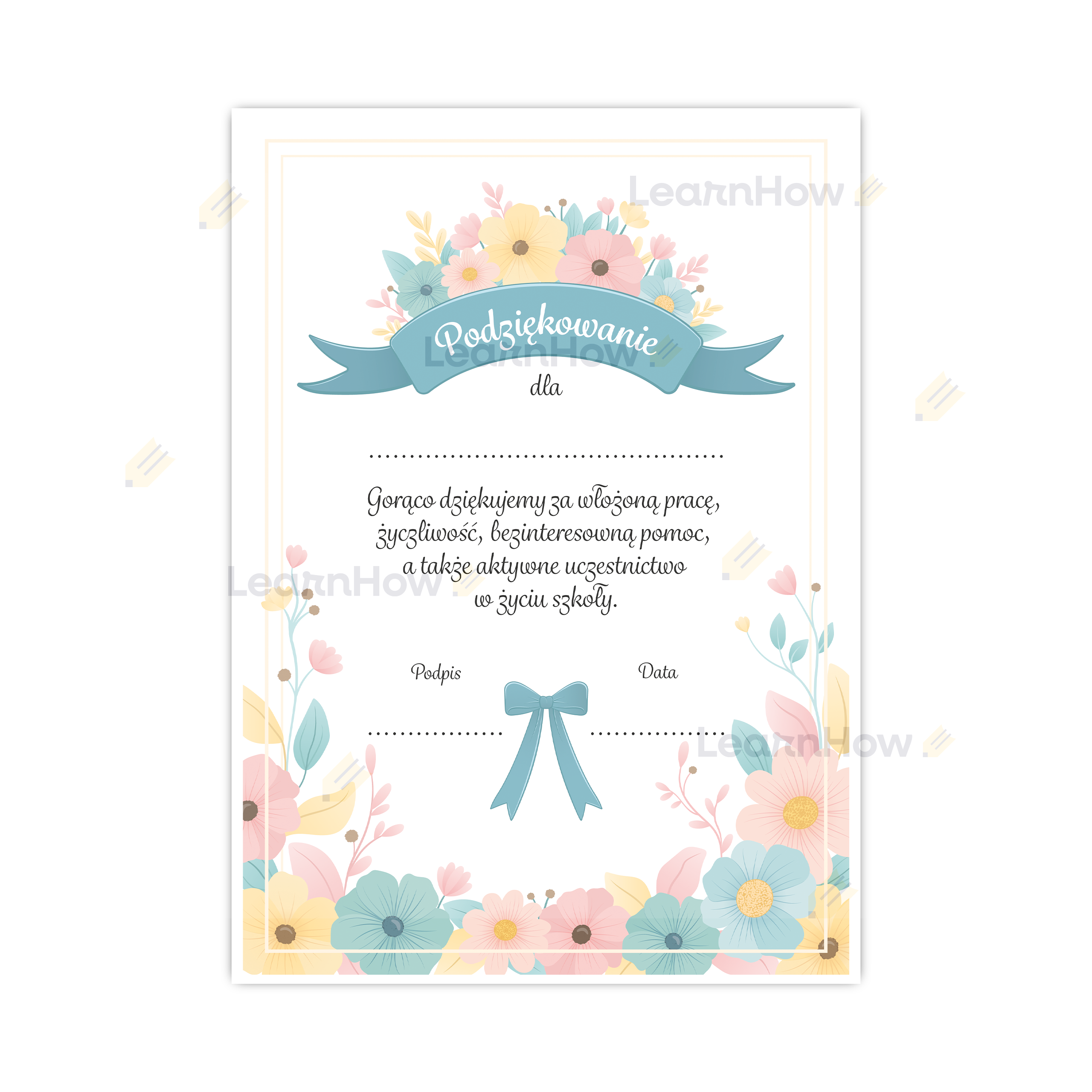DYPLOM PODZIĘKOWANIA DLA RODZICÓW - PASTELOWY
