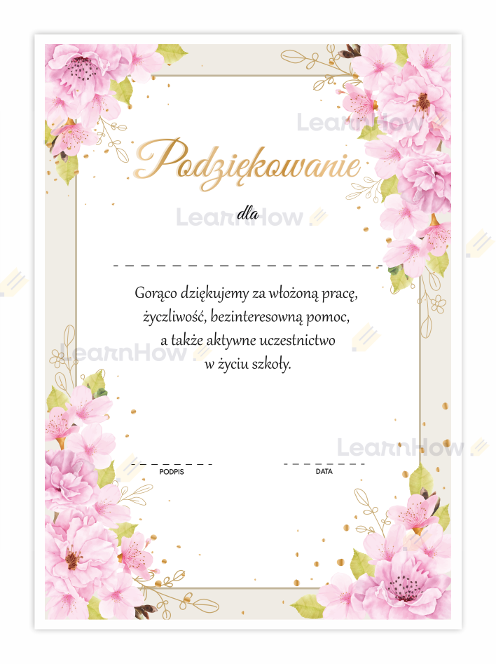 Dyplom z podziękowaniami dla rodziców dzieci w szkole idealnie sprawdzi się jako upominek w ramach wdzięczności.
