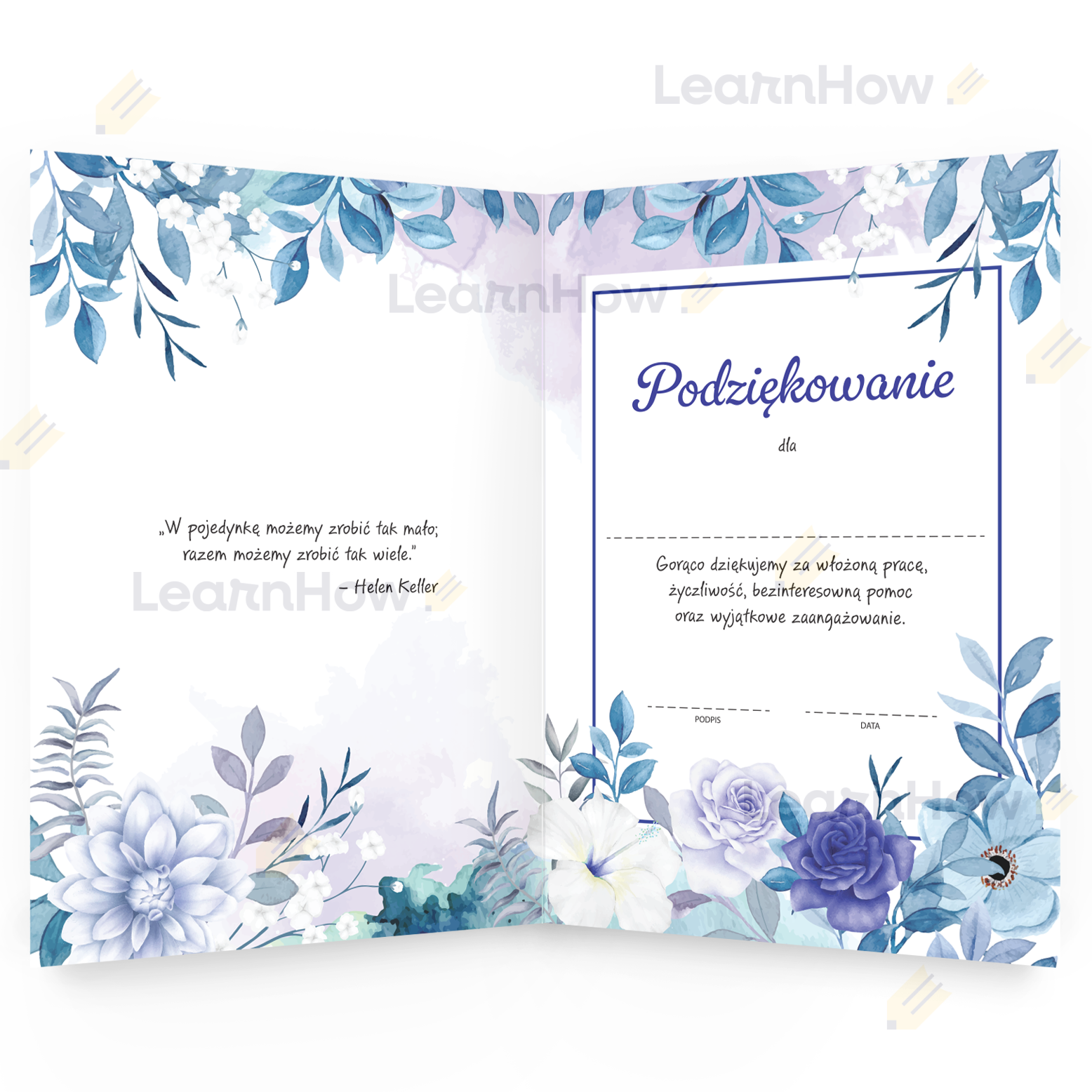 DYPLOM SKŁADANY PODZIĘKOWANIA - UNIWERSALNY - KWIATY