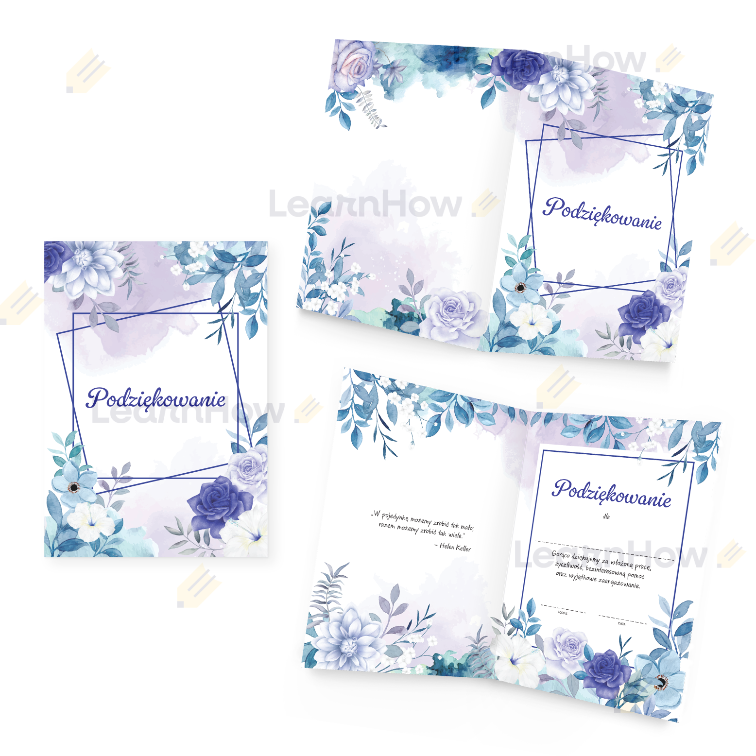 Dyplom składany Podziękowania idealnie sprawdzi się jako wyraz wdzięczności dla nauczycieli lub rodziców.