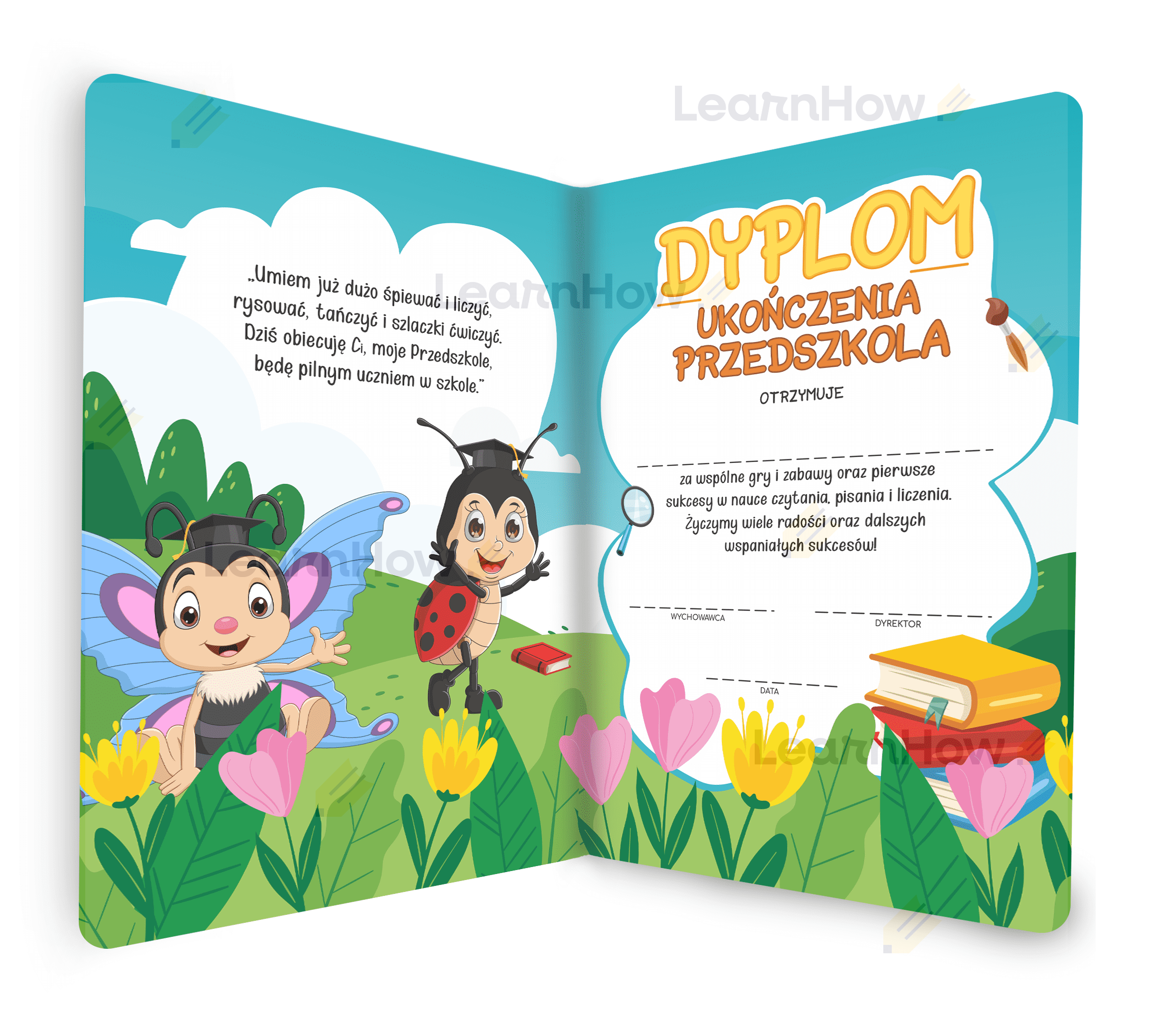 Dyplom składany ukończenia przedszkola idealnie sprawdzi się jako pamiątka na lata.