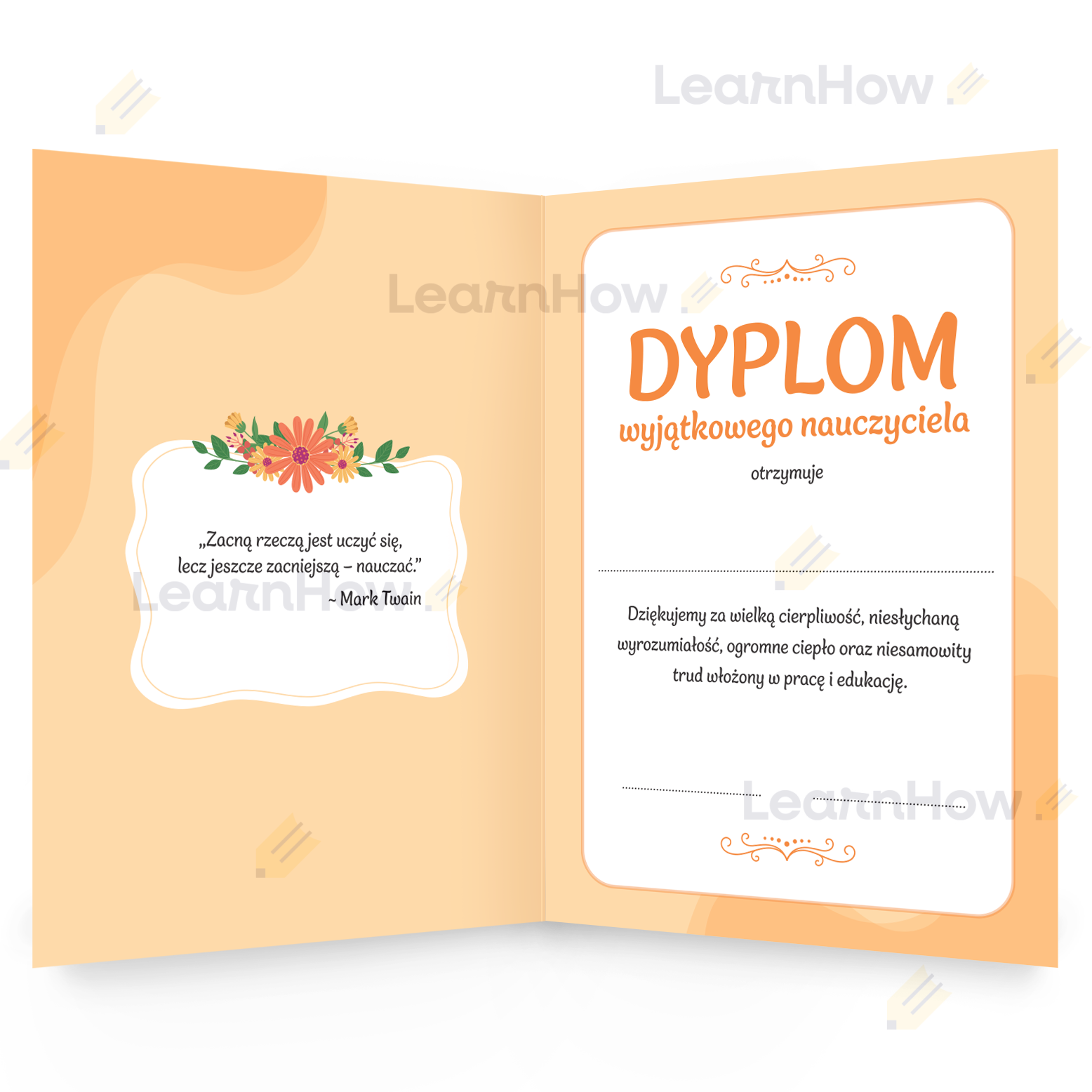 Dyplom z podziękowaniami idealnie sprawdzi się jako upominek dla wyjątkowego nauczyciela.