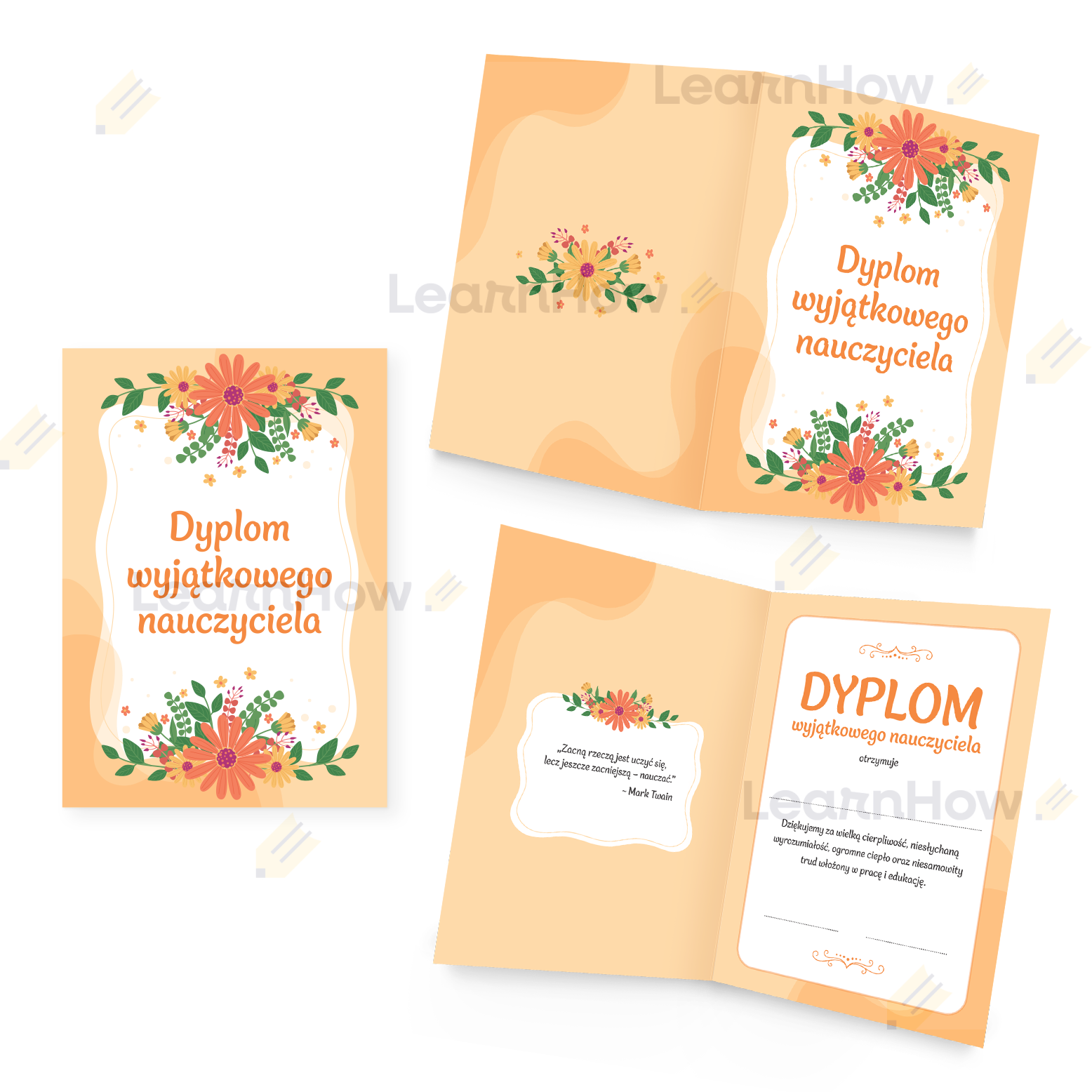 DYPLOM SKŁADANY - WYJĄTKOWEGO NAUCZYCIELA (A4 do A5)