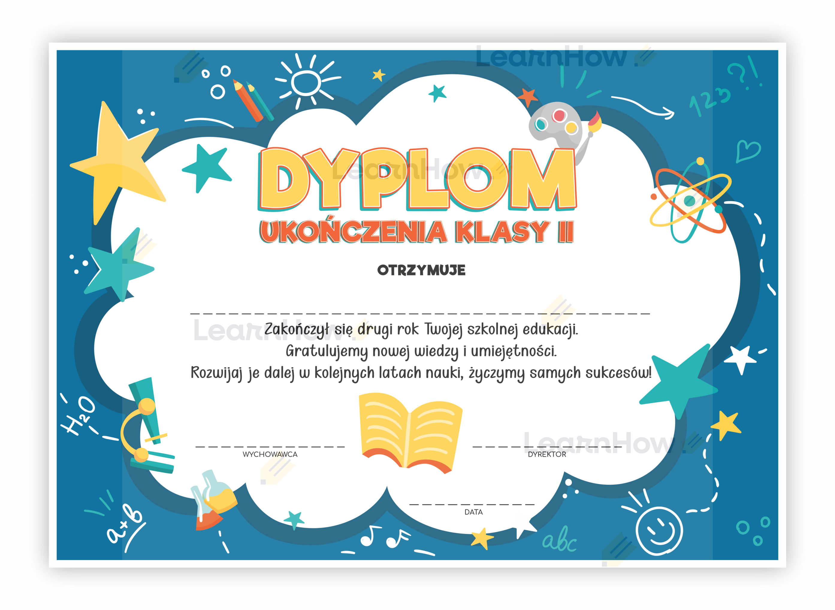 Dyplom ukończenia klasy drugiej idealnie sprawdzi się jako pamiątka zakończenia drugiego roku w szkole!