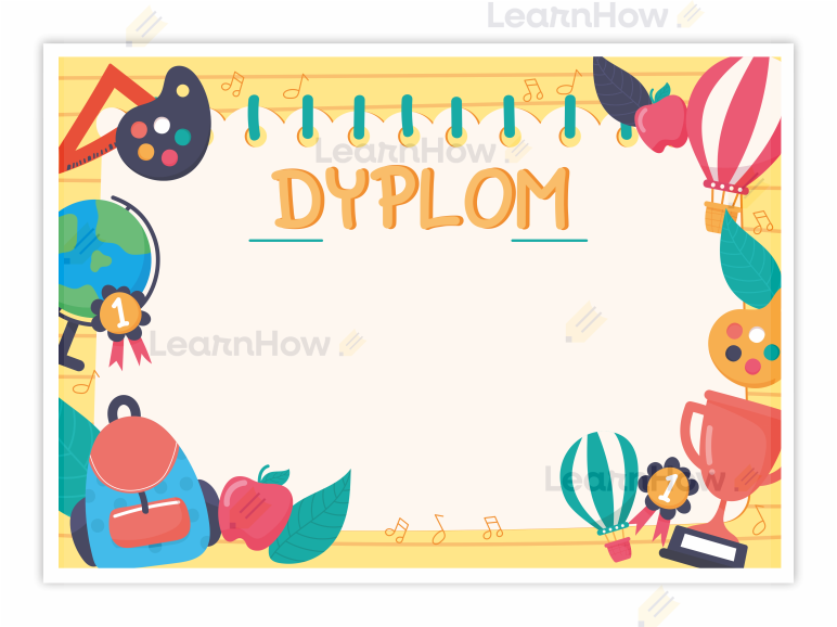 Dyplom uniwersalny idealnie sprawdzi się jako pamiątka za zdobyte osiągnięcie lub zakończenie roku szkolnego.
