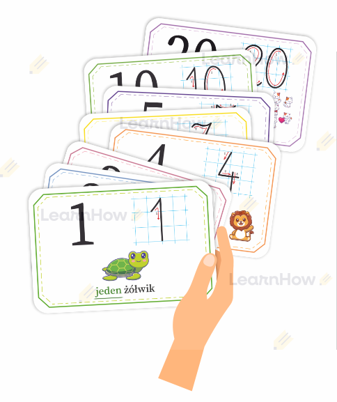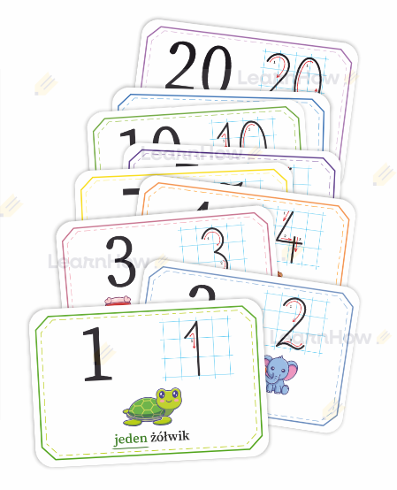 Zestaw zawiera cyfry od 0 do 20, razem aż 21 karty!