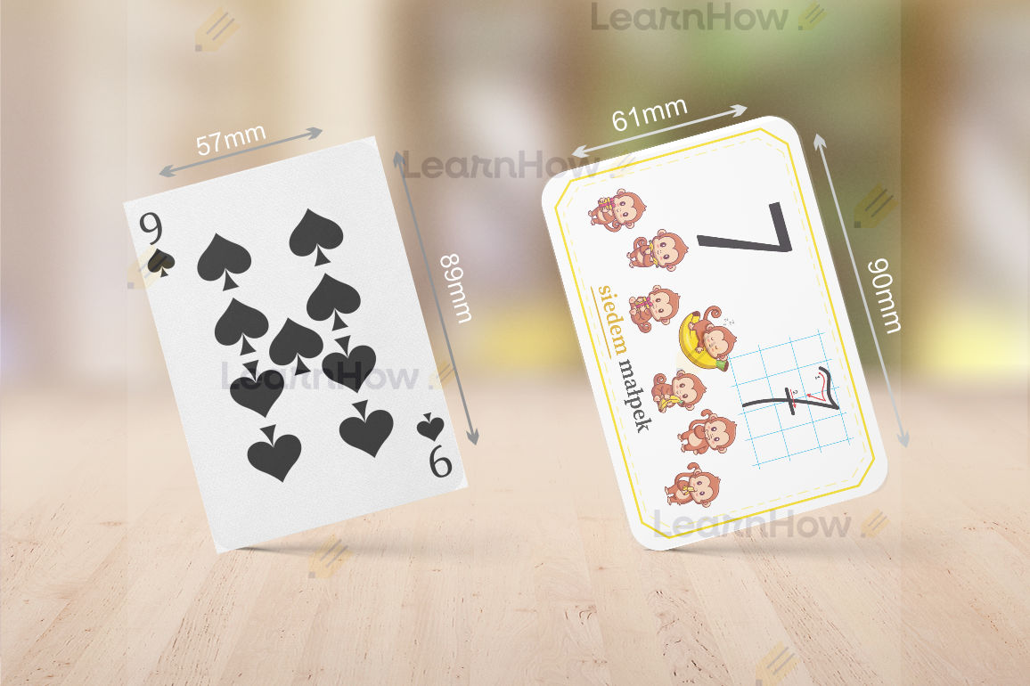 Rozmiar fiszek można porównać do standardowego rozmiaru kart do grania
