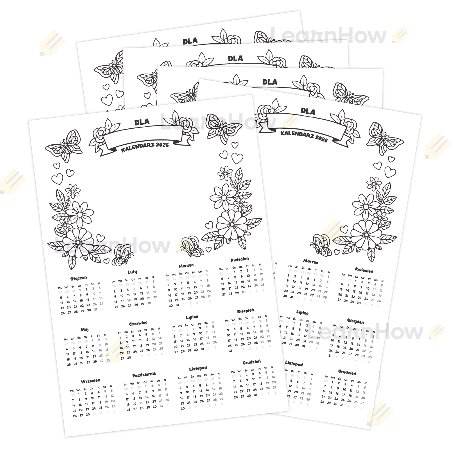 KALENDARZ LAURKA - KOLOROWANKA (A3, 5 sztuk)