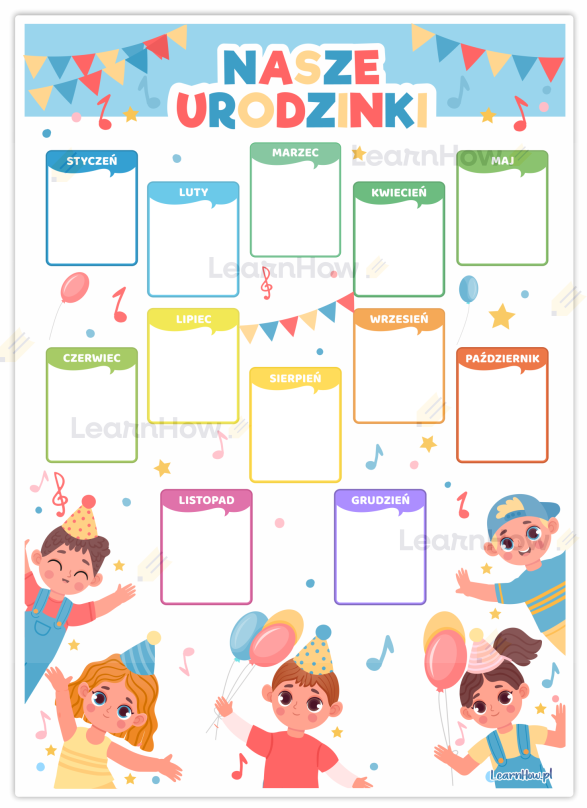 KALENDARZ URODZINOWY - NASZE URODZINKI - DZIECI A3