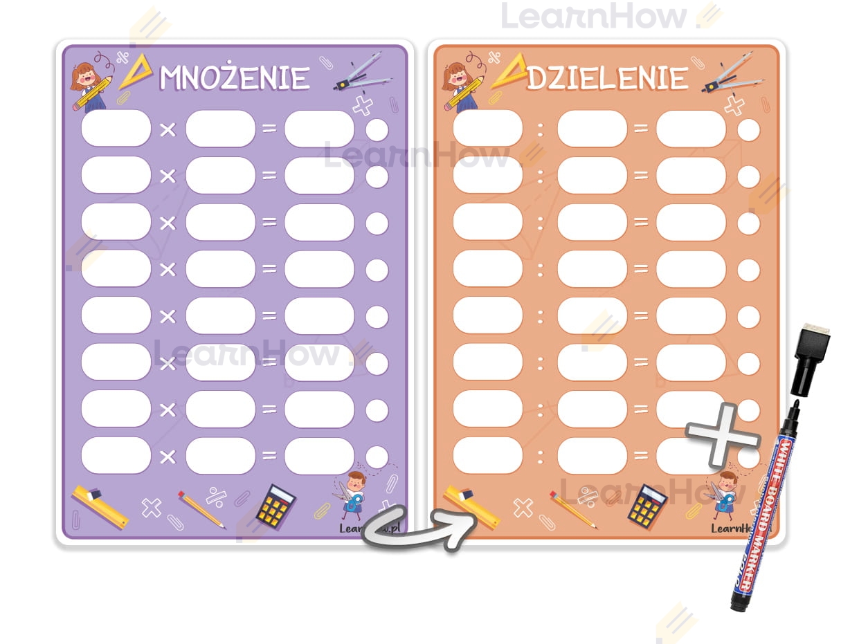KARTA PRACY PISZ I ZMAZUJ - MNOŻENIE/DZIELENIE + PISAK