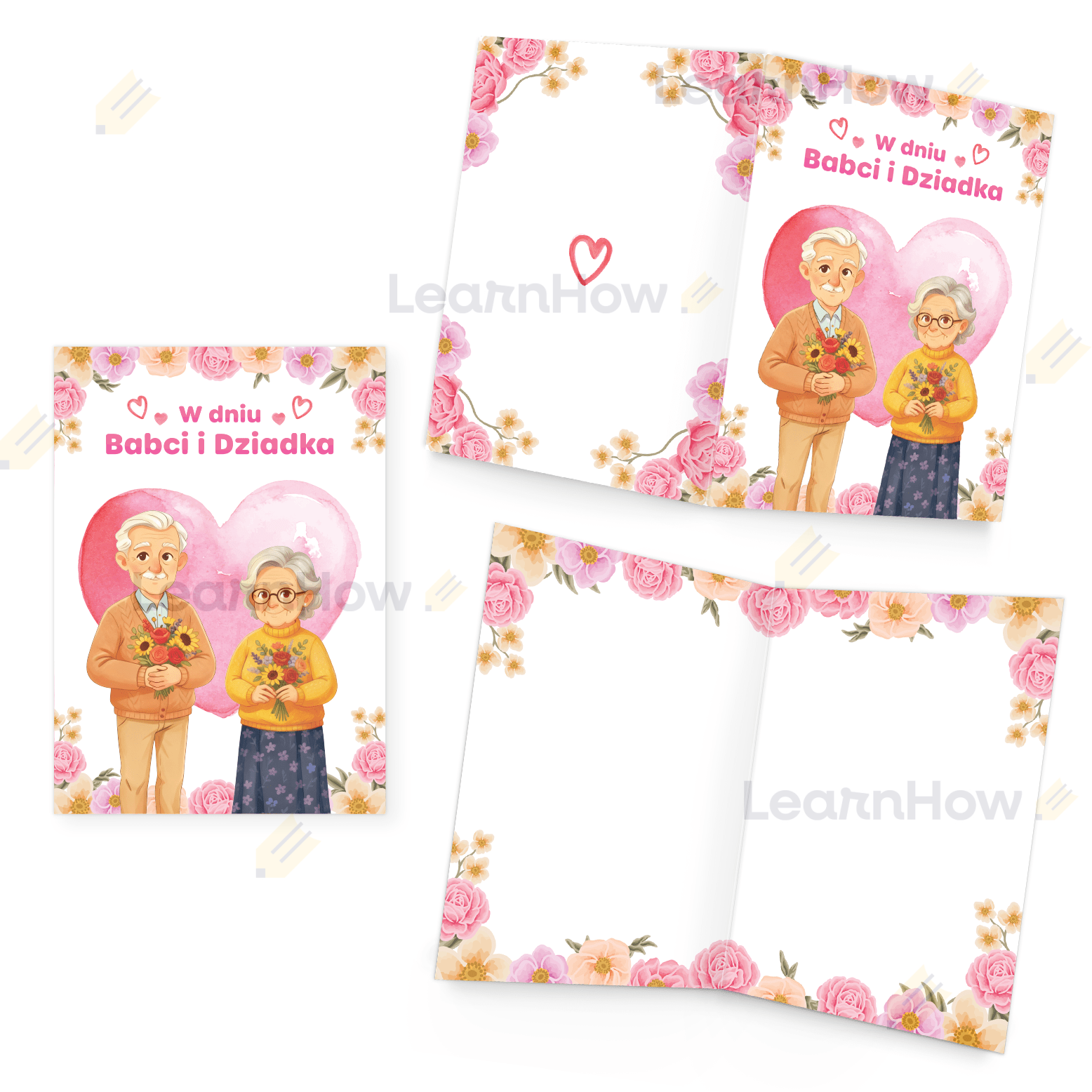 Kartka jest składana – na okładce znajduje się napis „W dniu Babci i Dziadka”, natomiast w środku jest dużo wolnej przestrzeni na wpisanie
