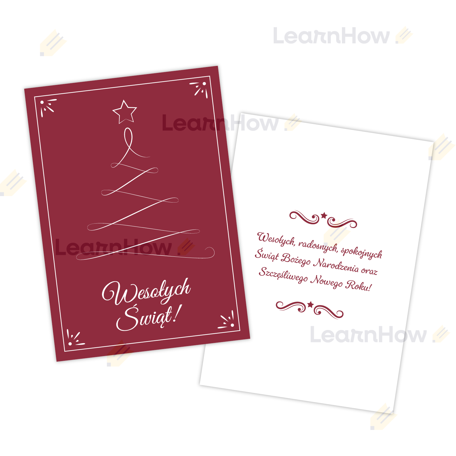 Kartka jest dwustronna - z przodu znajduje się napis "Wesołych Świąt!" oraz świąteczna grafika, natomiast na odwrocie kartki umieszczone