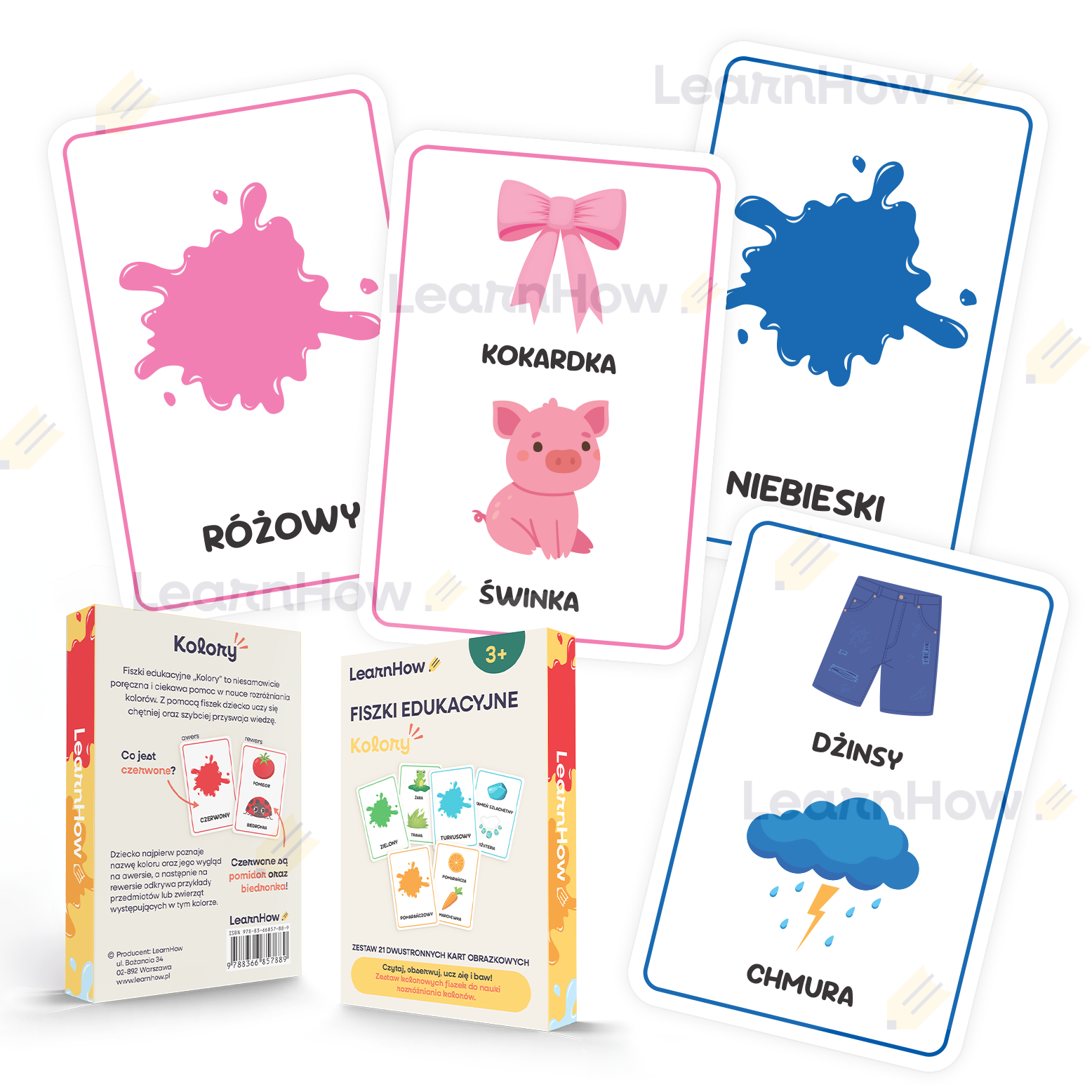 Kolorowe poręczne fiszki i wesołe obrazki sprawią, że dziecko będzie dużo chętniej podchodzić do nauki.