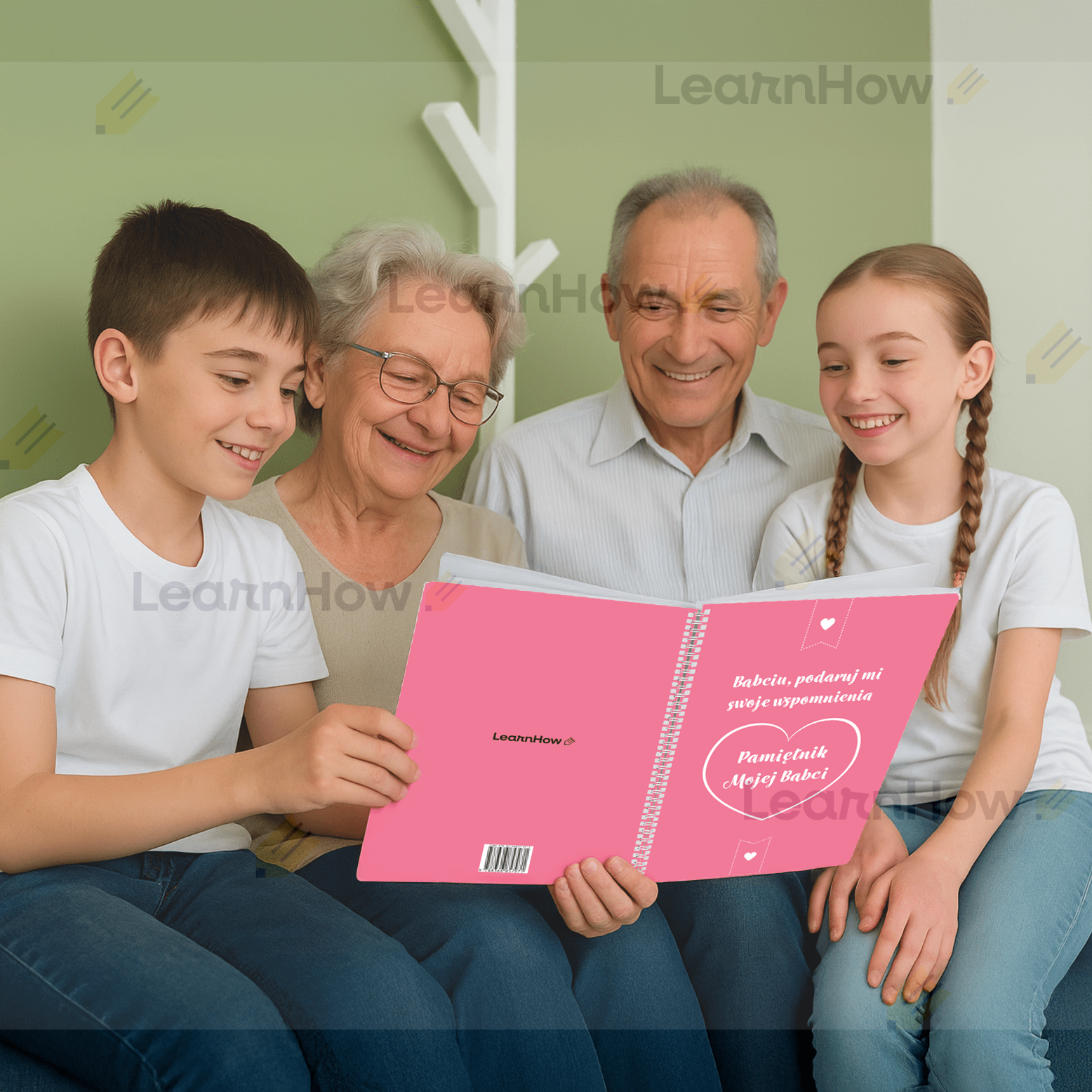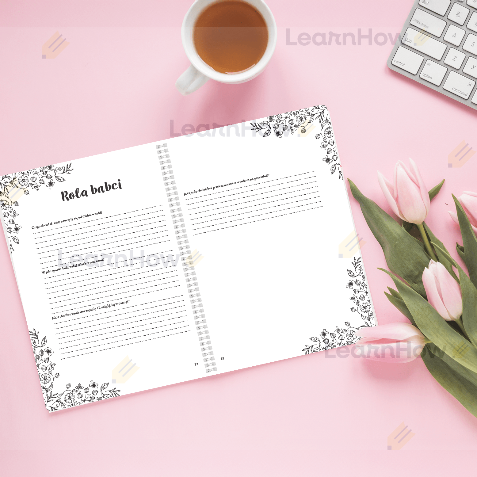 To pięknie zaprojektowana książeczka do samodzielnego wypełniania przez Babcię.