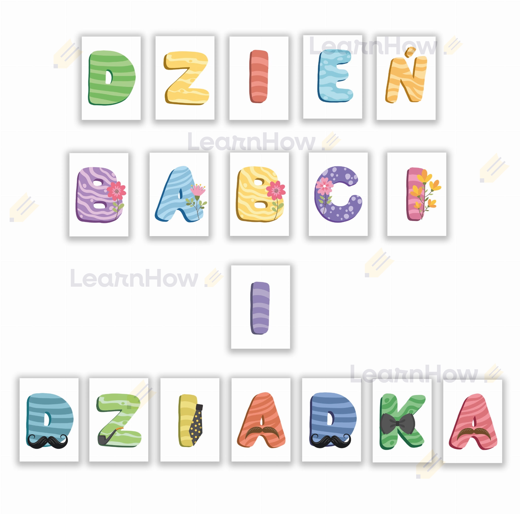 *zestaw zawiera same litery dekoracyjne, do zestawu literek nie są dołączone pinezki lub kropki.