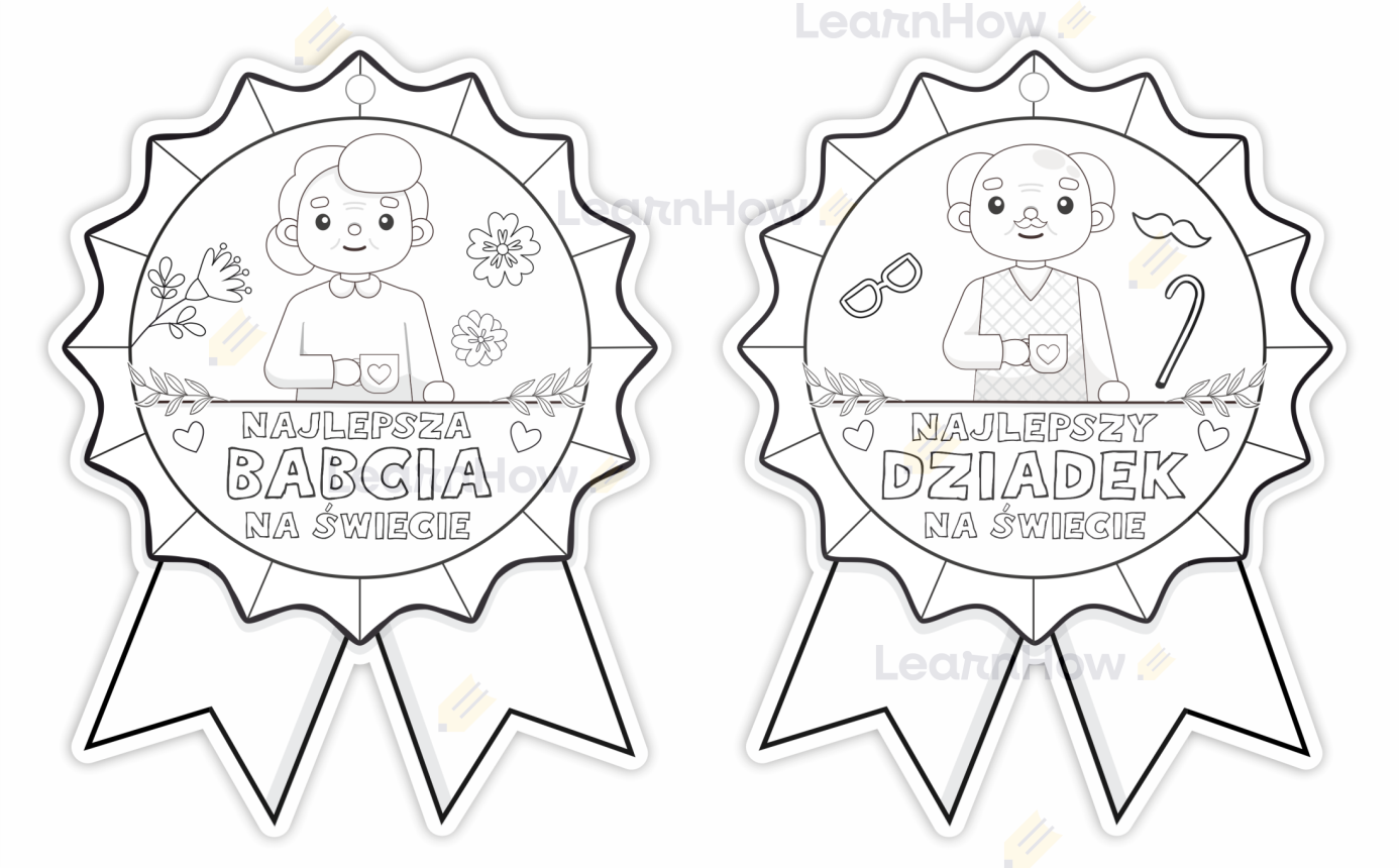 MEDAL PAPIEROWY - DZIEŃ BABCI I DZIADKA - NAJLEPSZA BABCIA, DZIADEK NA ŚWIECIE - DO KOLOROWANIA