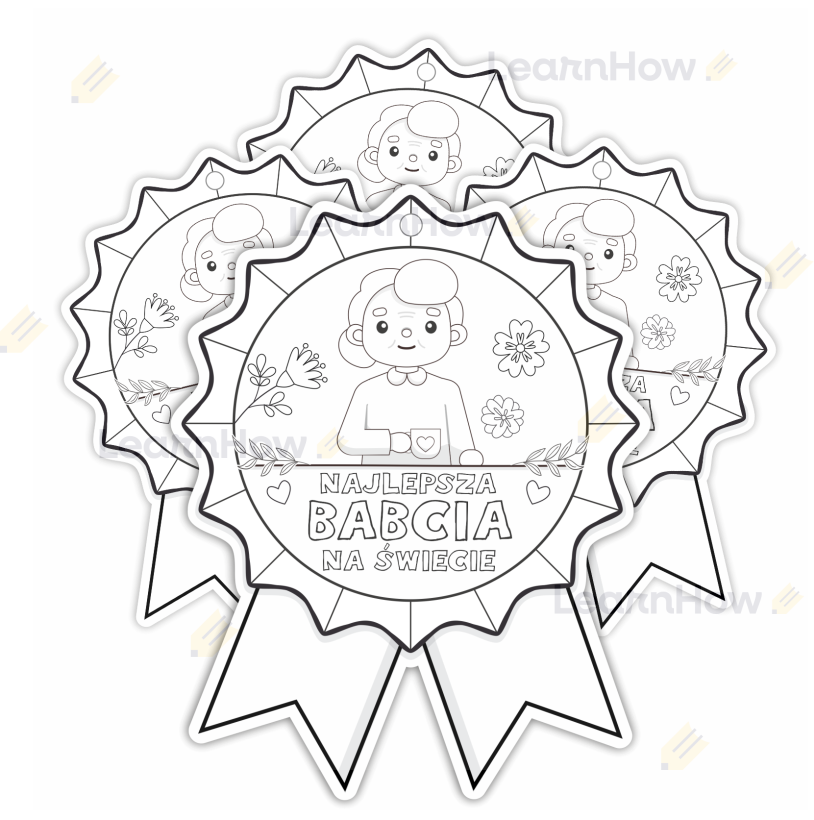 MEDAL PAPIEROWY - DZIEŃ BABCI - NAJLEPSZA BABCIA NA ŚWIECIE - DO KOLOROWANIA